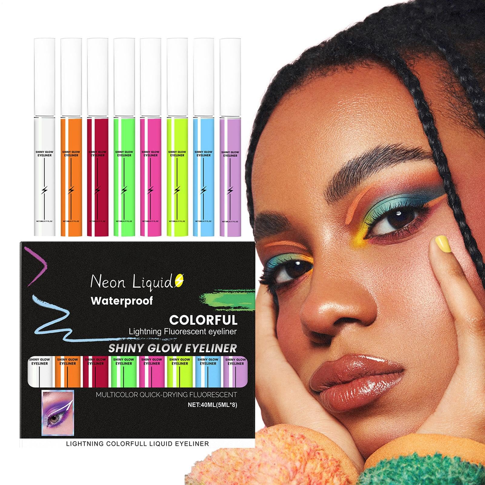 Our Neon Eye Liner set ensures your makeup stays put all day, making it perfect for artistic makeup, parties, or costume events. Specification: Product Name: Neon Eye Liner Set Product Size: As shown in the image Product Weight: 95g Net Contents: 5ml 8 Package Contents: Neon Eye Liner 8Creative Light Reaction: Thanks to its light-sensitive properties, this eyeliner pen glows intensely in the dark or under UV rays, while adopting a matte finish in the sun. Perfect for all occasions, from daytime outings to evenings out, it ensures precise application and impressive results. Its adaptability makes it a versatile choice for everyday or special occasion makeup, offering enhanced visibility and consistent coverage that elegantly elevates your style. Trendy Color Eyeliner: Featuring eight vibrant fluorescent colors, this liquid eyeliner pen guarantees artistic precision for makeup enthusiasts. It stimulates creativity at parties, costume events, or themed evenings, while providing a perfect finish adaptable to both bold and everyday looks. Its ease of application and long-lasting formula make it an ideal choice for expressing your style with modern and vibrant shades. Sun-Resistant Formula: Featuring an innovative formula, this eyeliner pen ensures your eye makeup stays vibrant and natural without drying out or fading when exposed to sunlight. Offering reliable performance during daytime activities like picnics or errands, it preserves color and hydration for a smooth, long-lasting finish all day. Travel-Friendly Liquid Eyeliner: With a lightweight feel and durable materials, this liquid eyeliner pen resists breakage and deformation, providing consistent performance for everyday use and easy portability in any environment. Perfect for on-the-go, it allows for quick and effortless application, ensuring flawless makeup while traveling, at the office, or out and about, thanks to its practical and reliable design. Festive and Emotional Gift: This liquid eyeliner pen is designed to convey the best emotions, making it a cherished gift for a loved one on special occasions such as birthdays, holidays, or festive seasons. It promotes and strengthens attachments through its versatile application, ideal for giving during celebrations and spreading happiness through a useful and thoughtful makeup accessory.Stylo Eyeliner Liquide Effet Luminescent De Longue Durée Dans Le Noir - Crayon Eyeliner Maquillage Fluorescent Pour Utilisation Quotidienne École Maison Extérieur Voyages Déplacement ProfessionnelDESCRIPTION DU PRODUIT Notre ensemble Neon Eye Liner garantit que votre maquillage reste intact toute la journée, ce qui le rend parfait pour le maquillage artistique, les fêtes ou les événements costumés. Spécification: Nom du produit: ensemble de eye-liner fluorescent Taille du produit : comme indiqué sur l'image Poids du produit : 95g Contenu net : 5 ml 8 Liste des packs Eye-liner fluorescent 8Réaction Lumineuse Créative: Grâce à sa réaction à la lumière, ce stylo eye-liner brille intensément dans l'obscurité ou sous rayons UV, tout en adoptant une finition mate au soleil. Parfait pour toutes les occasions, des sorties diurnes aux soirées, il assure une application précise et des résultats impressionnants. Son adaptabilité en fait un choix versatile pour les maquillages quotidiens ou événementiels, offrant une visibilité accrue et un rendu constant qui rehaussent votre style avec élég. Eyeliner Couleur Tendance : Doté de huit couleurs fluorescentes vibrantes, ce stylo eyeliner liquide garantit une précision artistique pour les passionnés de maquillage. Il stimule la créativité lors de fêtes, d'événements costumés ou de soirées à thème, tout en offrant une finition parfaite adaptable aux looks audacieux et quotidiens. Sa facilité d'application et sa durabilité en font un choix idéal pour exprimer son style avec des teintes modernes et éclatantes. Formule Résistante au Soleil: Doté d'une formule innovante, ce stylo eyeliner assure que votre maquillage des yeux reste éclatant et naturel sans sécher ou s'estomper lorsqu'exposé à la lumière du soleil. Offrant une performance fiable pendant les activités diurnes comme les pique-niques ou les courses, il préserve la couleur et l'hydratation pour un fini uniforme et durable toute la journée. Eyeliner Liquide pour Voyage: Doté d'une sensation légère et de matériaux robustes, ce stylo eyeliner liquide résiste à la casse et à la déformation, une performance cohérente pour un usage quotidien et une portabilité aisée dans tout environnement. Parfait pour les déplacements, il permet une application facile et rapide, sans effort, pour un maquillage parfait en voyage, au bureau ou en sortie, grâce à son design pratique et fiable. Cadeau Festif et Émotionnel: Ce stylo eyeliner liquide est conçu pour transmettre les meilleures émotions, en faisant un présent cher pour un être aimé lors d'occasions spéciales telles que les anniversaires, les fêtes ou les saisons festives. Il favorise la et renforce les attachments through son application polyvalente, ideal pour offrir pendant les célébrations et diffuser du bonheur through un accessoire de maquillage utile et attentionné.