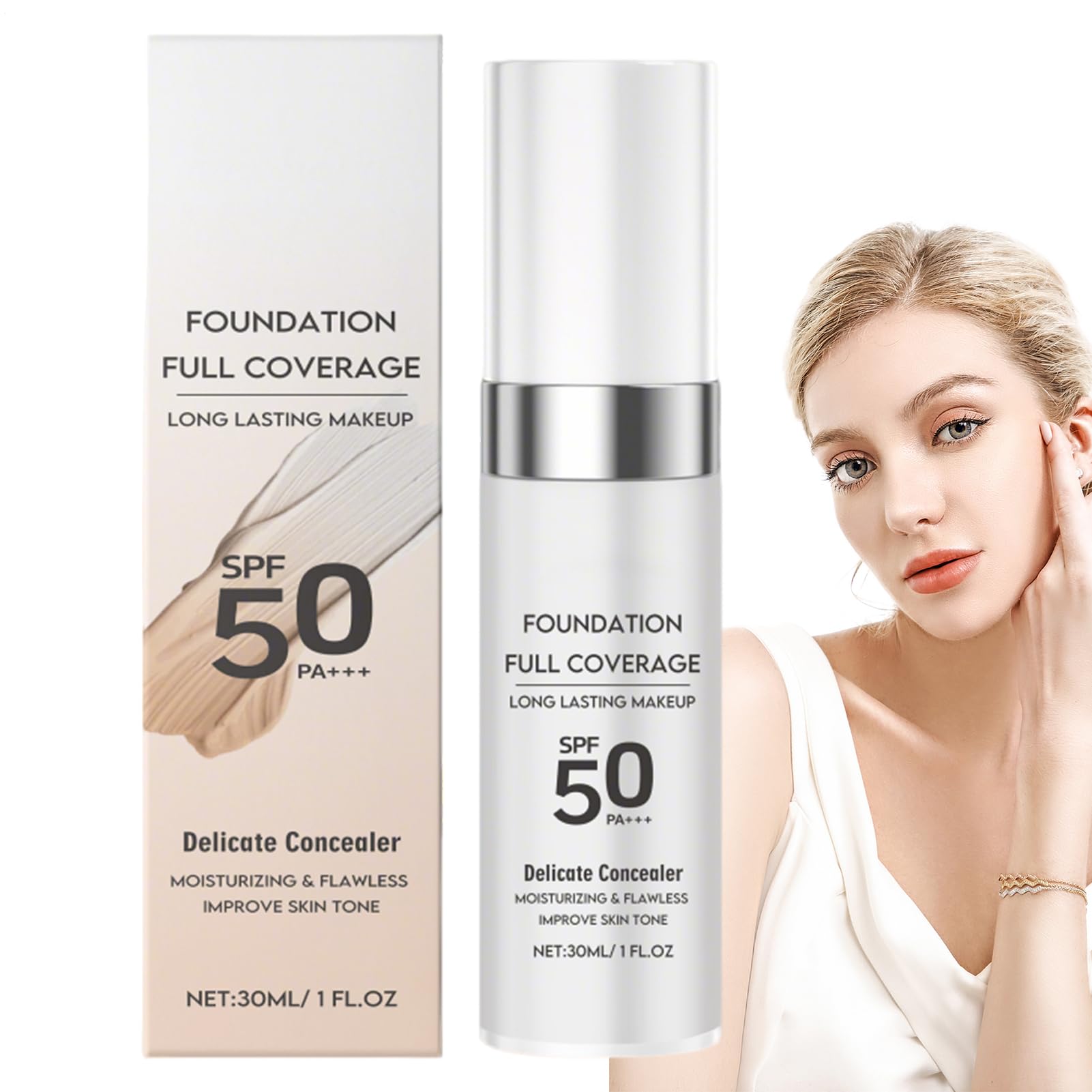 Liquid Foundation Makeup - Long-Lasting Concealer - SPF 50 Self-Adapting Foundation with Long-Lasting Coverage for an Even Complexion and Perfect Makeup