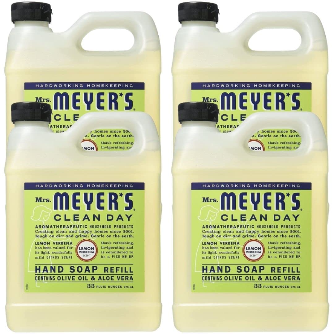Liquid Hand Soap Refill Cruelty Free and Biodegradable Formula Herbal Free Mass Skin Care Non-Drying Softening Cleanser Lemon Verbena Scent 33 OZ Each Pack Pack of 4