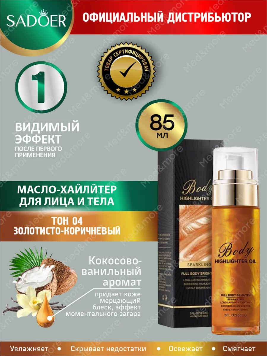 | Комплектация | Масло-хайлайтер для лица и тела Sadoer тон 04 Золотисто-коричневый 85 мл. |