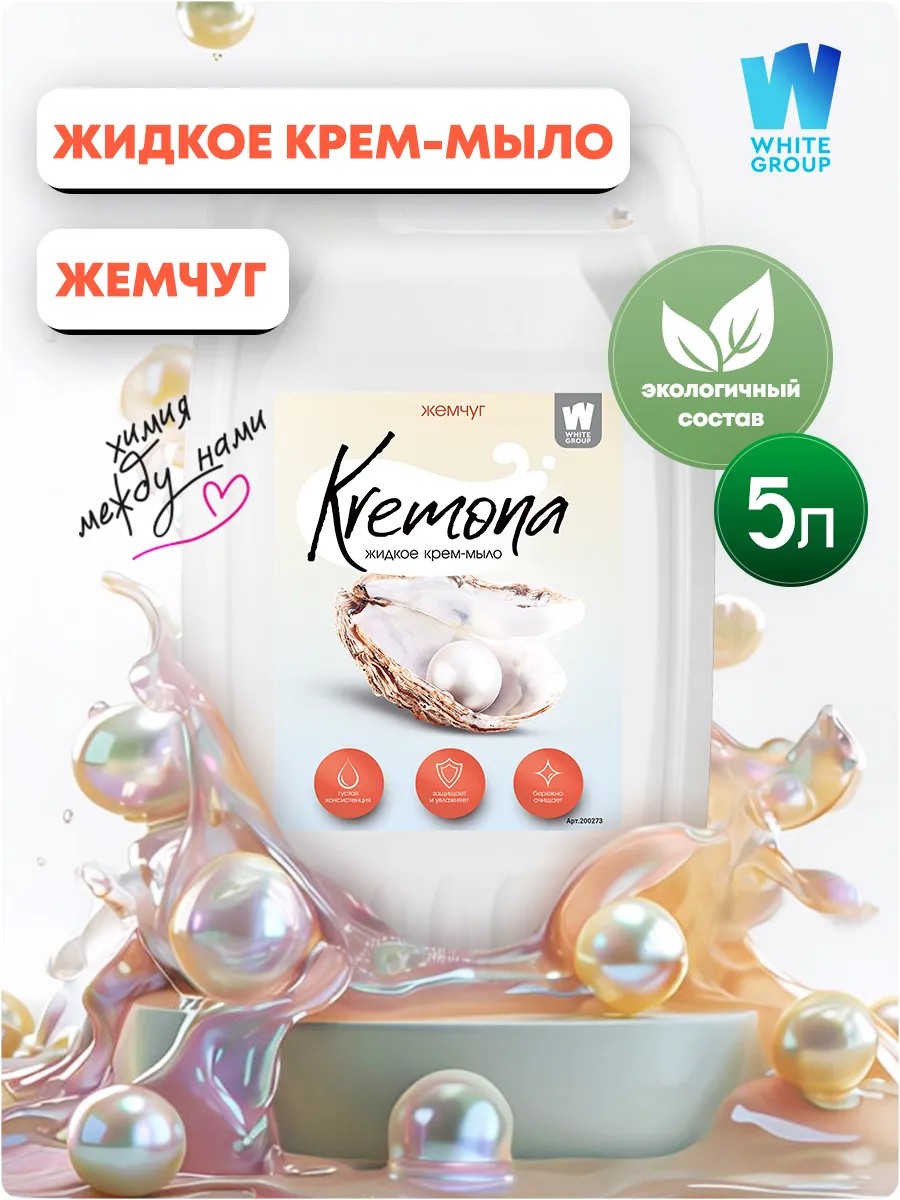 Жидкое мыло KREMONA с ароматом Жемчуг - отличный выбор для ежедневного ухода за руками, которое очищает, питает и увлажняет кожу. Объем жидкого мыла для рук - 5л, что позволяет использовать его в течение длительного времени, особенно выгодно для большой семьи, и экономить на покупке новых флаконов. Жидкое мыло Кремона - это не просто мыло, его также использовать как гель пенка для душа, который обеспечивает нежный и эффективный уход за телом. Мы используем только высококачественные ингредиенты, чтобы наши продукты были деликатными к коже, но при этом эффективно очищали и увлажняли. Наше густое крем мыло для рук жидкое идеально подходит для взрослых и для детей, а также для использования в качестве мыла для интимной гигиены женщин, поскольку обладает гипоаллергенной формулой, может быть использовано даже как банное.