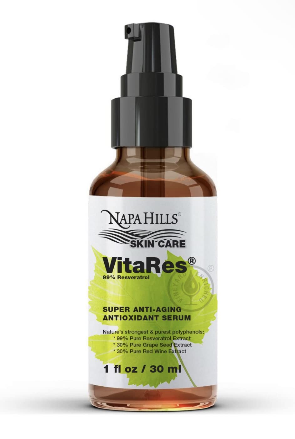 VitaRes Skincare Serum: Infused with Resveratrol grape skins seeds for deep hydration and nourishment.