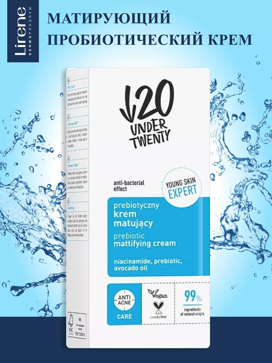 Крем для ежедневного ухода за молодой, чувствительной кожей. Благодаря формуле с оптимально подобранными природными ингредиентами вы получите средство с эффектами, наиболее важными для того, чтобы ваша кожа выглядела свежей – эффектами увлажнения и матирования (сохраняющимися до 8 часов). Пребиотик – восстанавливает защитный барьер. Ниацинамид – уменьшает продукцию кожного сала. Гамамелис виргинский – обладает антибактериальным и матировочным эффектом. Масло авокадо – обладает увлажняющим и восстановительным эффектом. Алантоин – снимает раздражение Матировочный эффект – 84% Улучшает увлажнение кожи – 79% Восстанавливает свежесть кожи – 89% Питает кожу – 84%