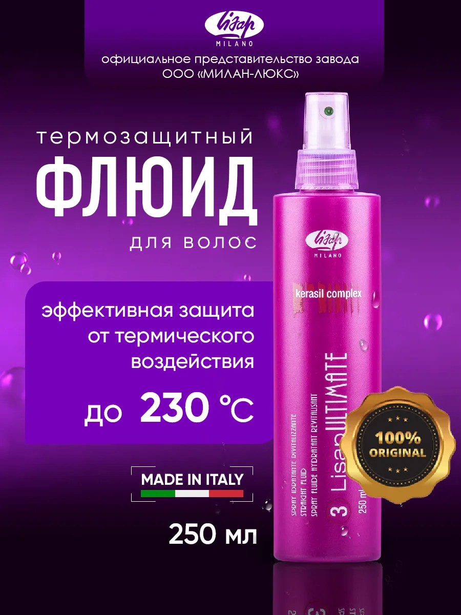 Your hair will be reliably protected from the damaging effects of blow-dryers, flat irons, and other hot tools, while its structure will be strengthened and become more resistant to external factors. Directions: Apply the fluid evenly to clean hair, strand by strand, then straighten with a round brush and a hair dryer or hot iron.