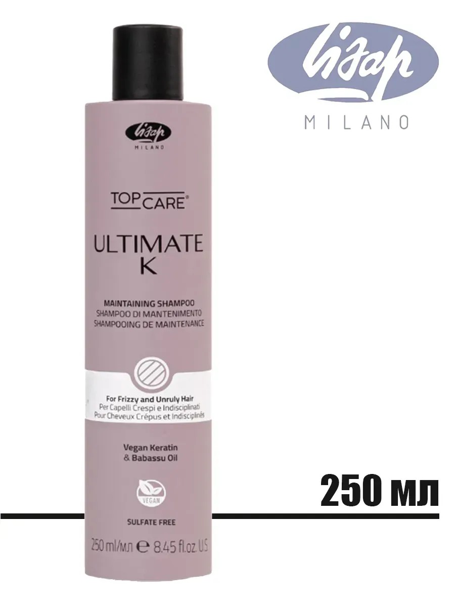 Top Care Ultimate K Maintaining Shampoo for Unruly Hair, 205ml. Cleanses the scalp and moisturizes hair, preventing frizz. Enhances and maintains the results of keratin, Botox, and hair lamination procedures. Contains plant keratin and babassu oil to help maintain smoothness, making hair manageable and silky. SULFATE FREE. Active ingredients: plant keratin, rice protein, babassu oil, coconut oil. Lisap Ultimate Taming Shampoo features an updated design and formula! Maintains the results of the Ultimate K straightening procedure, leaving hair easy to care for and style, silky, and combable. No added salt! Contains babassu oil and phytokeratin. How to use: Apply a small amount of shampoo to wet hair, gently massage, and rinse with plenty of water. Repeat application, leaving the shampoo on the hair for 2-3 minutes before finally rinsing. shampoo for curly hair, shampoo for curly and wavy hair, professional shampoo for curly hair, shampoo for curly hair, shampoo for curly and wavy hair, shampoo for curly hair professional, shampoo for curly, shampoo for curly hair for women, shampoo for curls, shampoo for curly and wavy hair professional, sulfate-free shampoo for curly hair, tresemme shampoo for curly hair, shampoo for curly hair for men, shampoo for curly hair for children, matrix shampoo for curly hair, kapous shampoo for curly hair, smoothing hair cream, smoothing hair spray, smoothing spray for, smoothing cream for hair