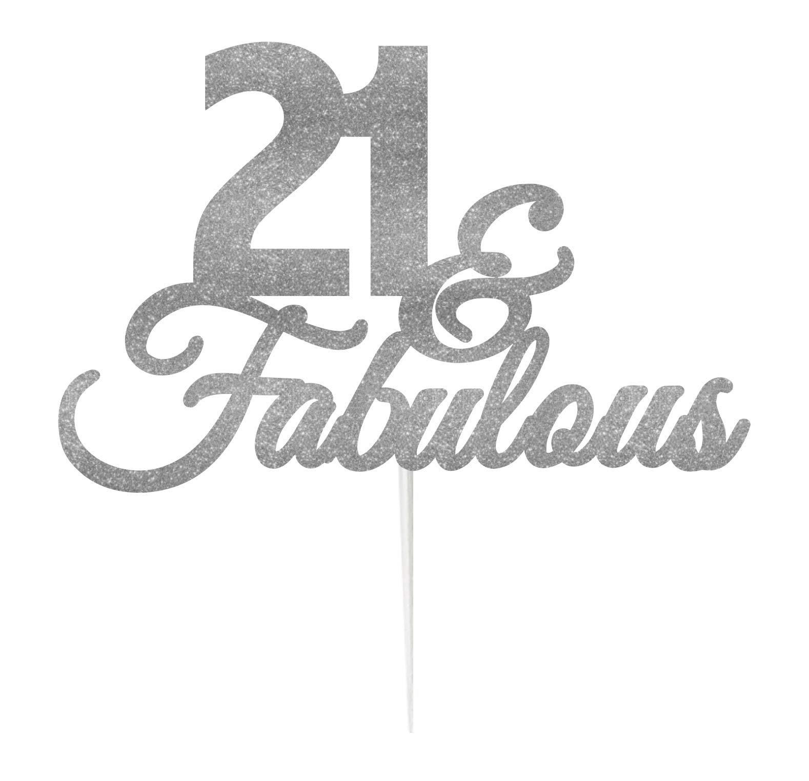 LissieLou 21 & Fabulous Birthday Cake Topper Decoration Glitter Card Made in the UK - Silver