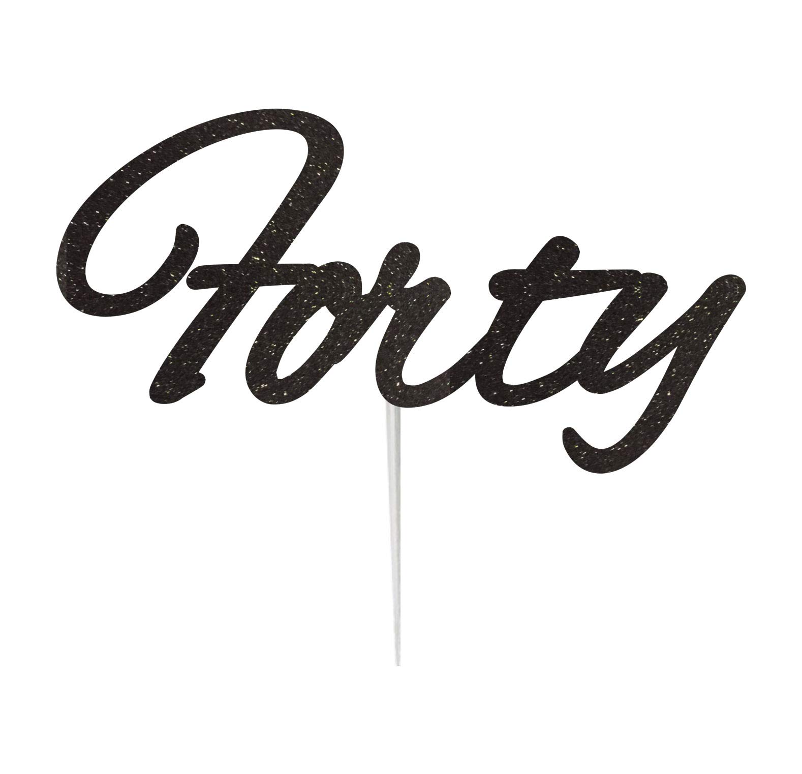 LissieLou 40th Birthday Cake Topper Decoration with Curly Written 'Forty' Glitter Card in Black