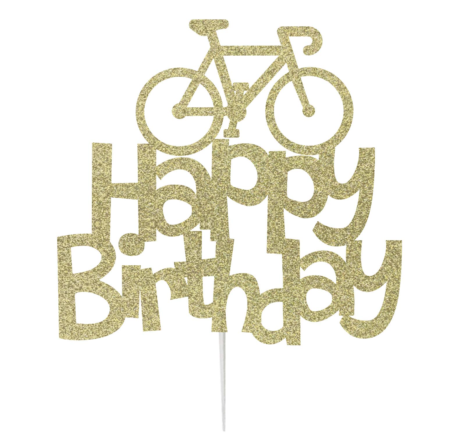 LissieLou Bicycle Style Happy Birthday Cake Topper Decoration in Gold Made in the UK