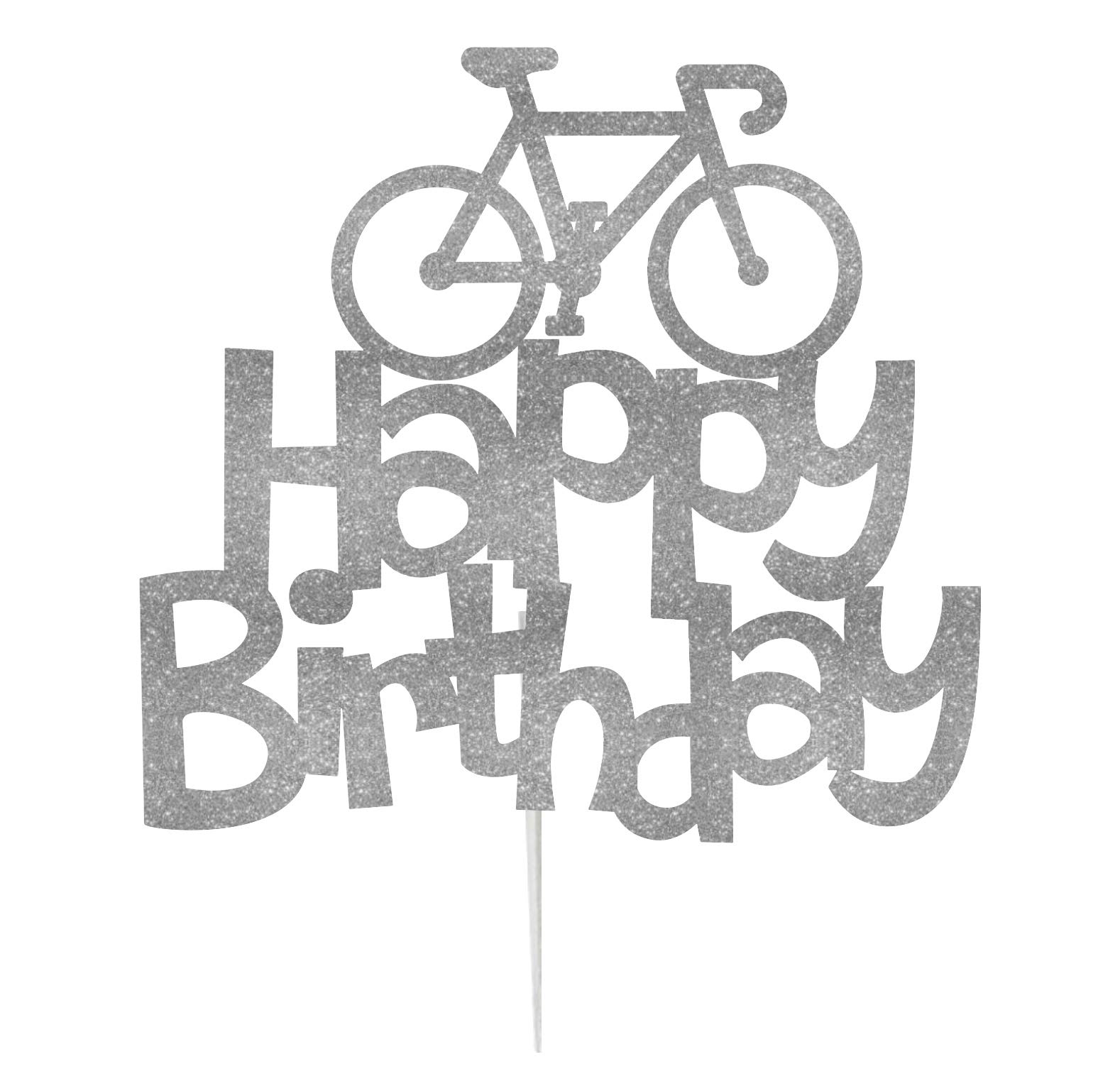 LissieLou Bicycle Style Happy Birthday Cake Topper Decoration in Dark Blue Made in the UK