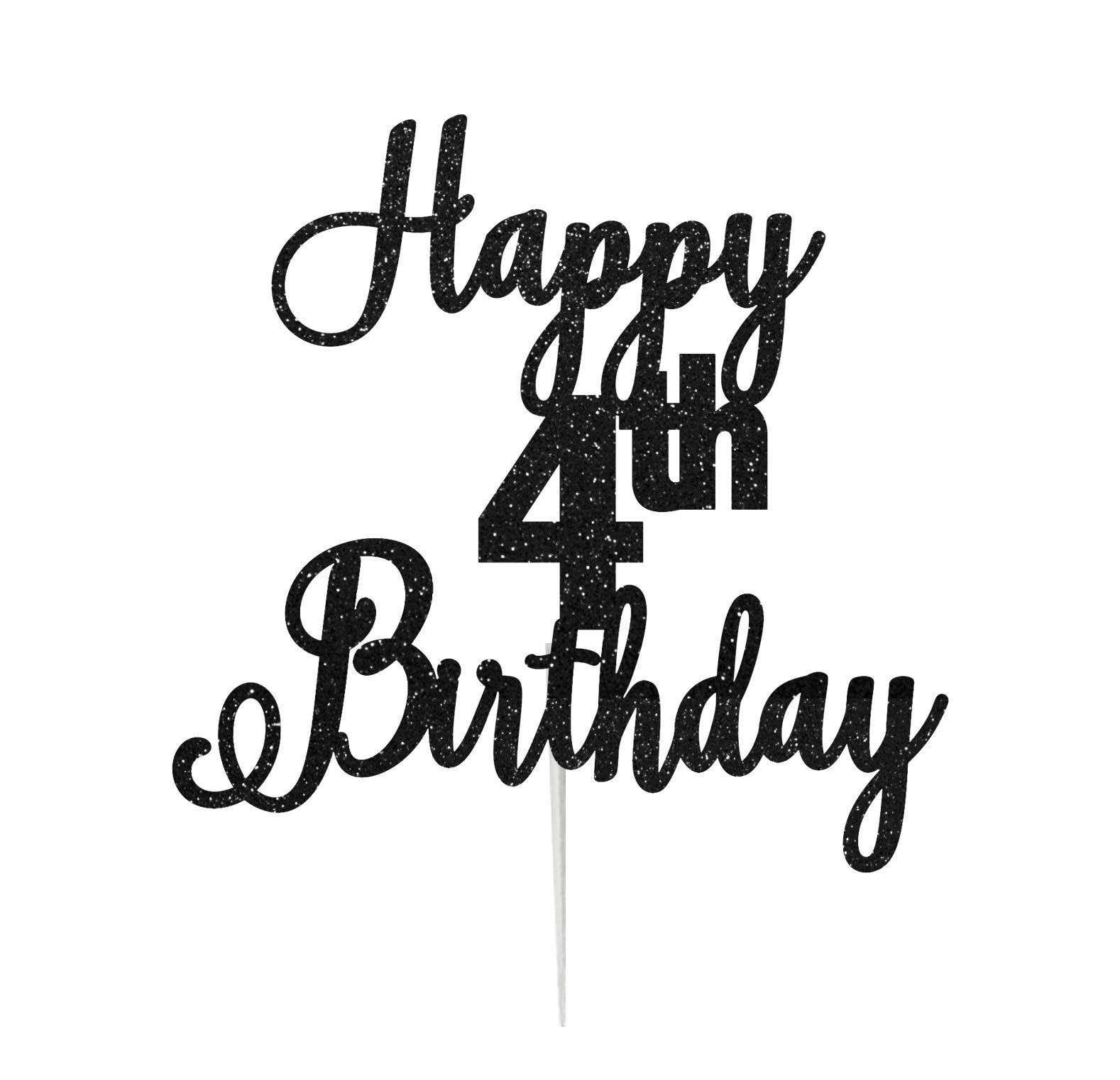 LissieLou Happy 4th Birthday Cake Topper in Pretty Glitter Card Made in the UK - Black