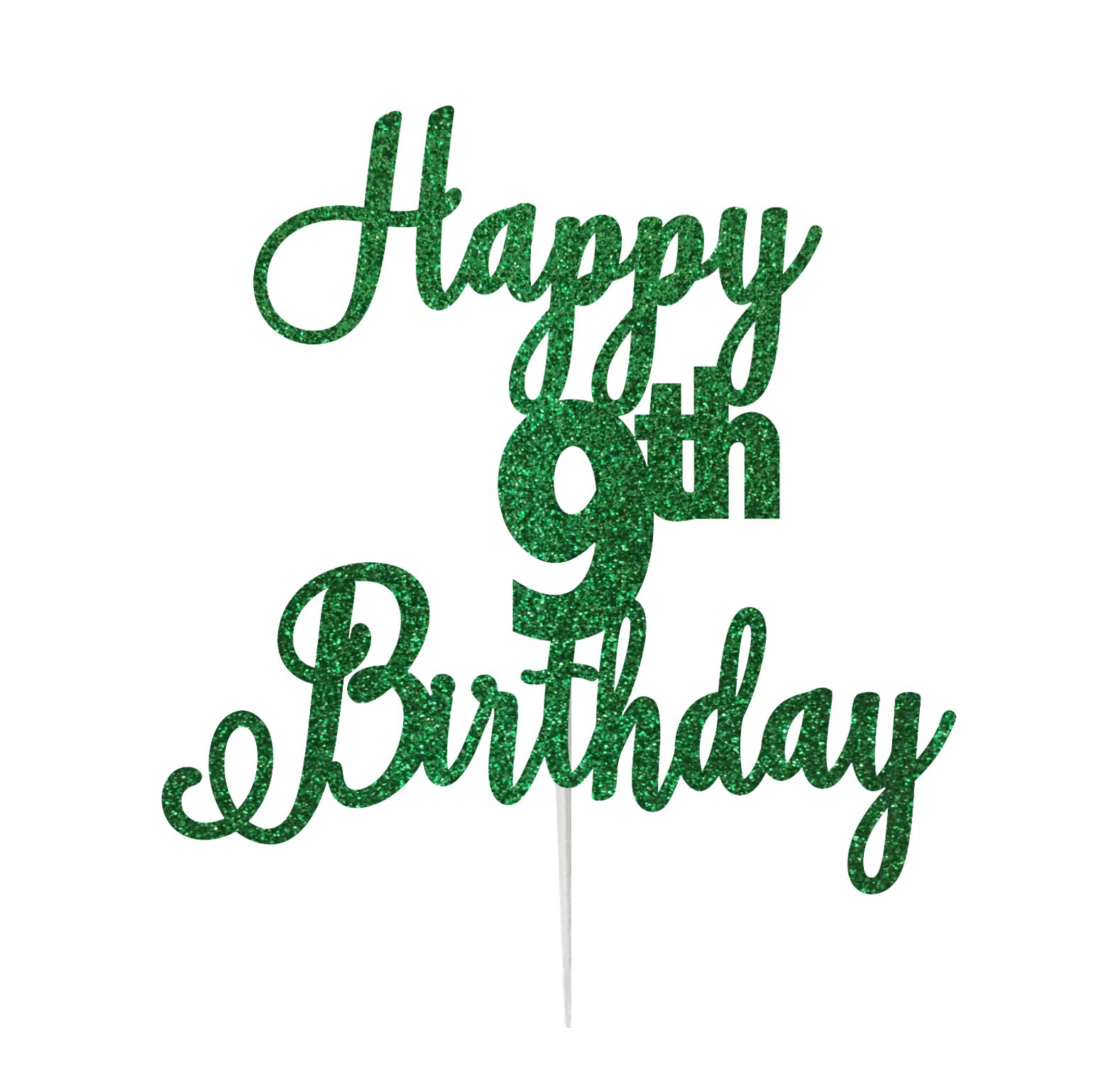 LissieLou Happy 9th Birthday Cake Topper in Pretty Glitter Card Made in the UK - Green
