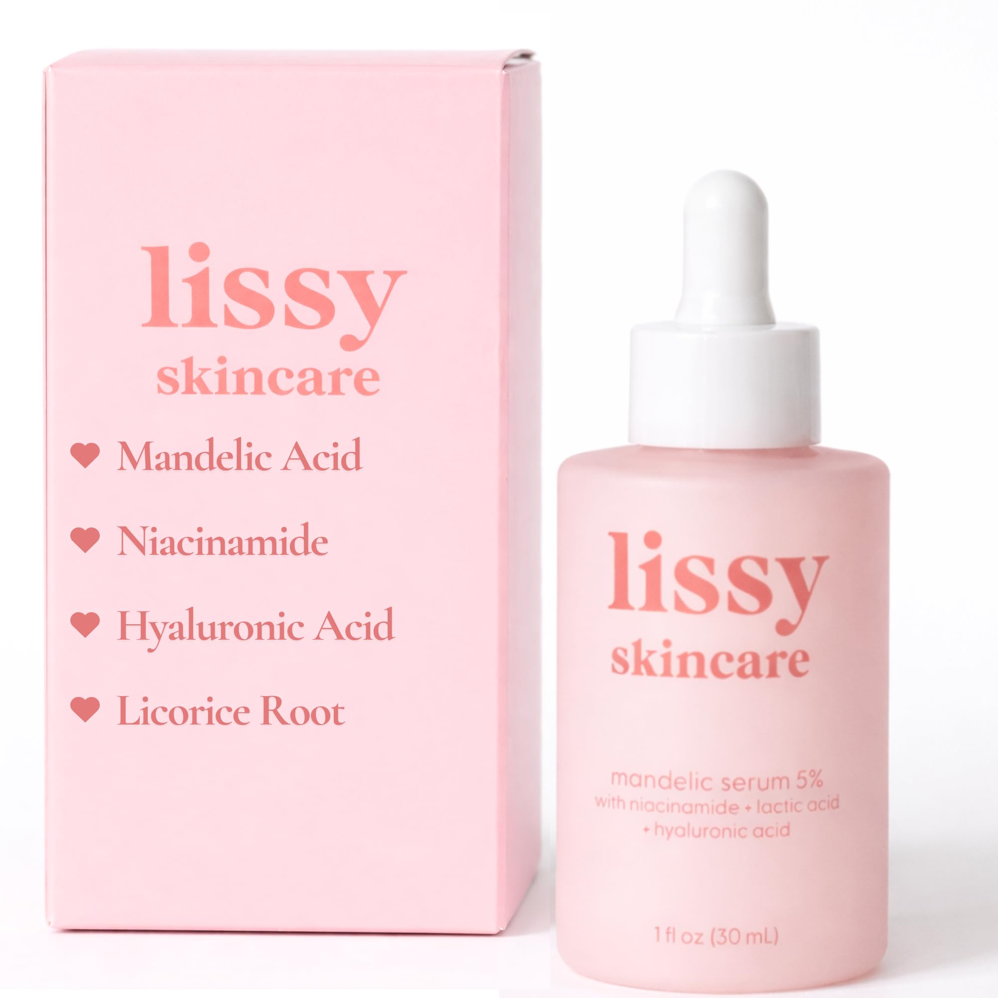Lissy Skincare- Mandelic Acid Niacinamide Serum For Reducing Redness, Blemish Exfoliate, Balancing Treatment Licorice Root Hyaluronic Acid for Hydration Improved Complexion