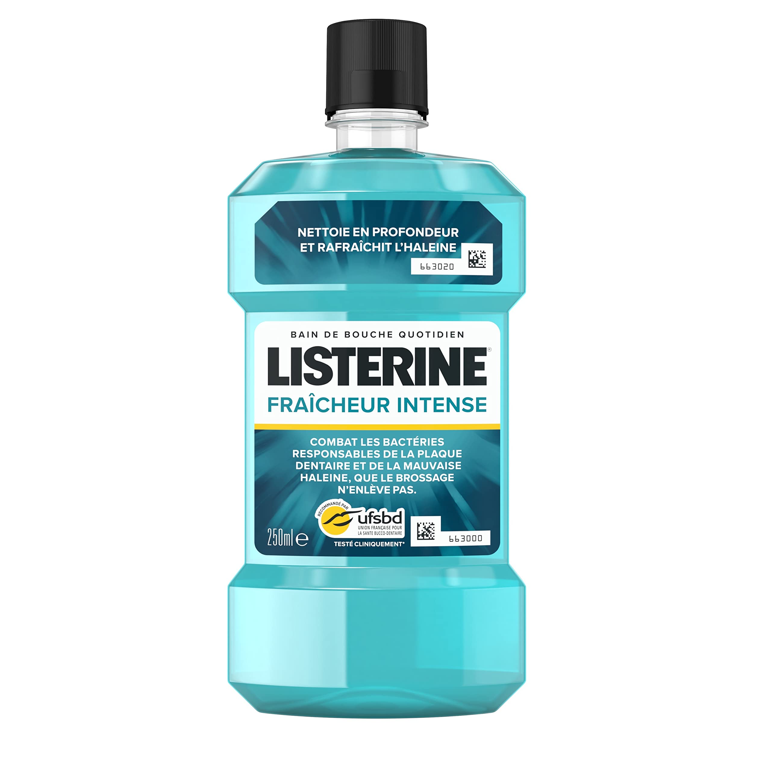 LISTERINEFRAÎCHEURINTENSEvousassure24heuresdeprotectioncontrelaplaqueetunehaleinefraîchedurablement.C'estcliniquementprouvé,LISTERINEFRAÎCHEURINTENSEcombatlesbactériesresponsablesdelaplaquedentaire mêmedansleszonesdifficilesd'accèsaubrossage.