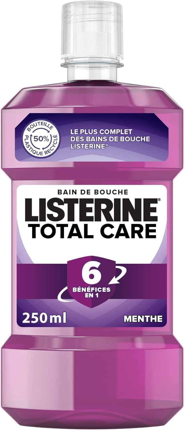 Delivery: 1 x Listerine Total Care. Bottle 100 recyclable . Contains 50 recycled plastic. Dispose of the bottle with the cap closed. without the safety seal. For complete protection, the French Union for Oral Health (UFSBD) recommends using this mouthwash daily, in addition to brushing, morning and evening. Fights bacteria even in hard-to-reach areas. Freshens breath for up to 24 hours. Maintains healthy gums. Strengthens teeth against cavities. Prevents tartar buildup to help keep teeth whiter.