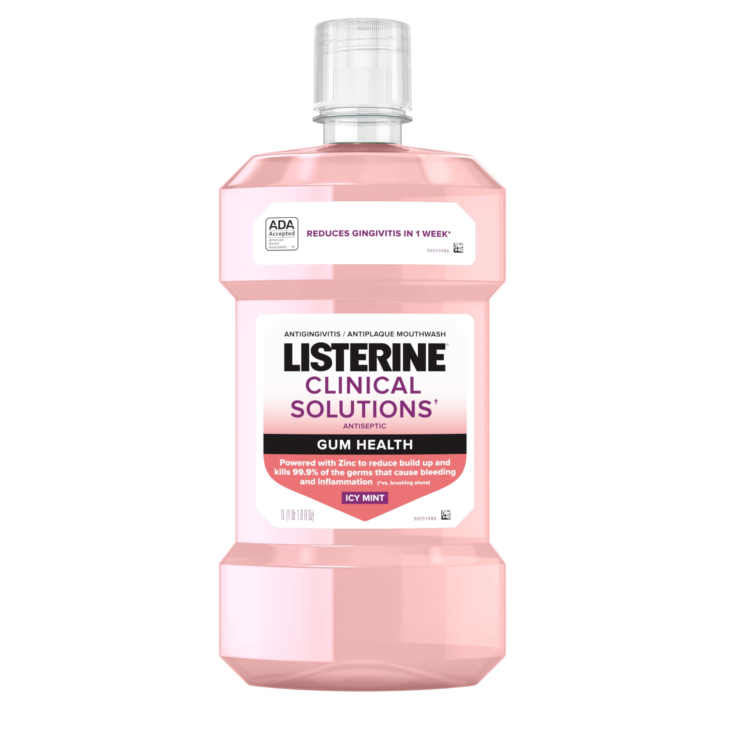 Listerine Clinical Solutions Gum Health Antiseptic Mouthwash Antigingivitis & Antiplaque Oral Rinse Helps Prevent Plaque Buildup & Immediately Kills Germs for Healthier Gums ICY Mint 1 L 33.8 Fl Oz (Pack of 1)