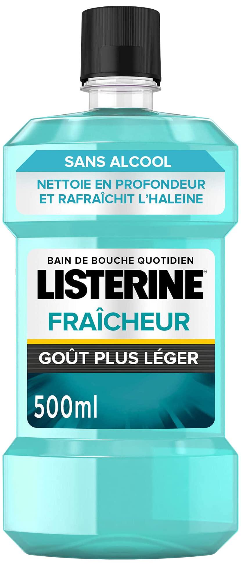 Made in Italy. lighter taste. Removes bacteria that cause plaque and bad breath, which brushing does not remove. Cleans thoroughly and freshens breath.Listerine Mondbad Frisse smaak, lichtere smaak, 500 mlGemaakt in Italië. lichtere smaak. Verwijdert bacteriën die tandplak en slechte adem veroorzaken, die bij het borstelen niet worden verwijderd. Reinigt grondig en verfrist de adem.