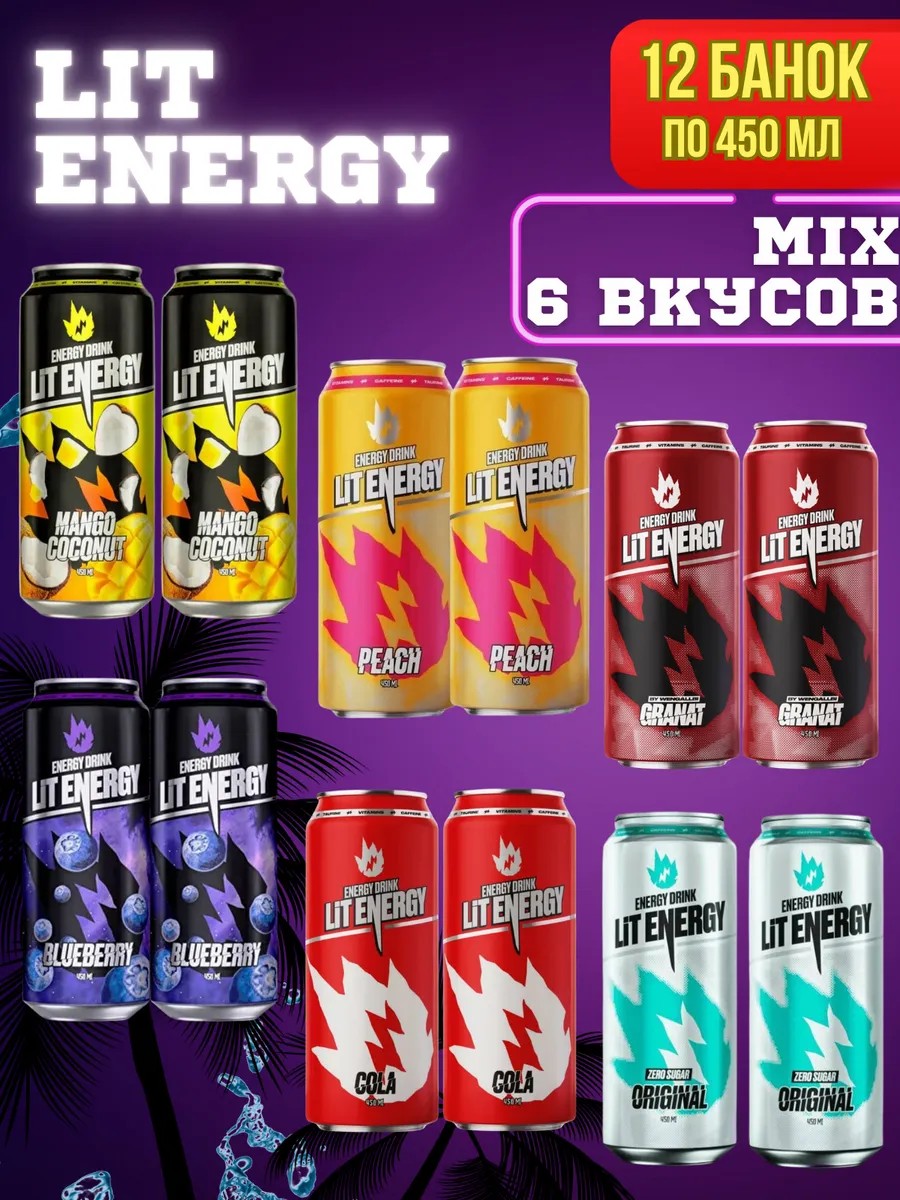 LIT ENERGY микс8 12шт по 450 мл. Энергетический напиток