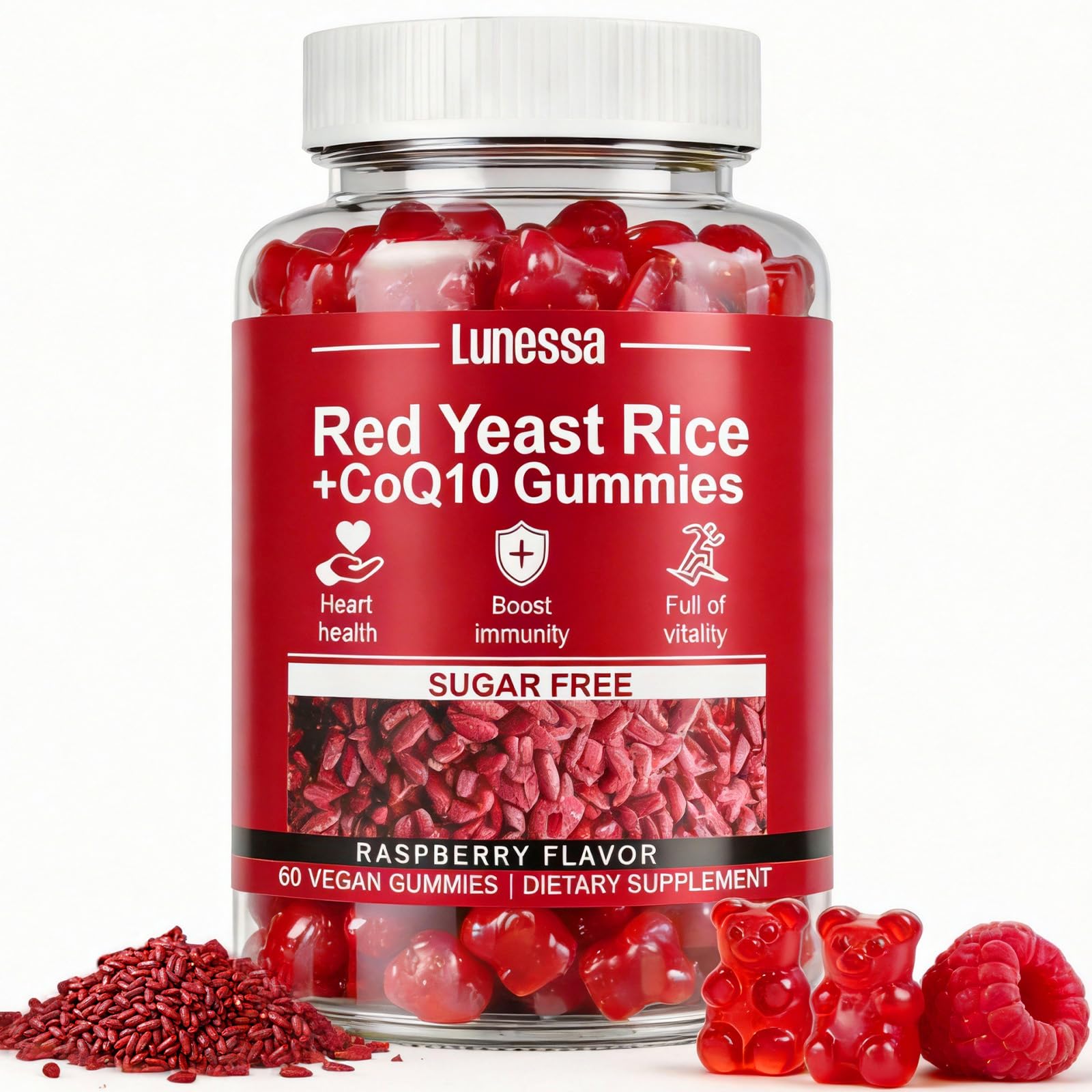 LithCiphi Lunessa Red Yeast Rice and CoQ10 Restores Body Vitality & Maintains Healthy Cholesterol Levels for Men & Women Raspberry Flavor Non-GMO 60 Gummies (1)