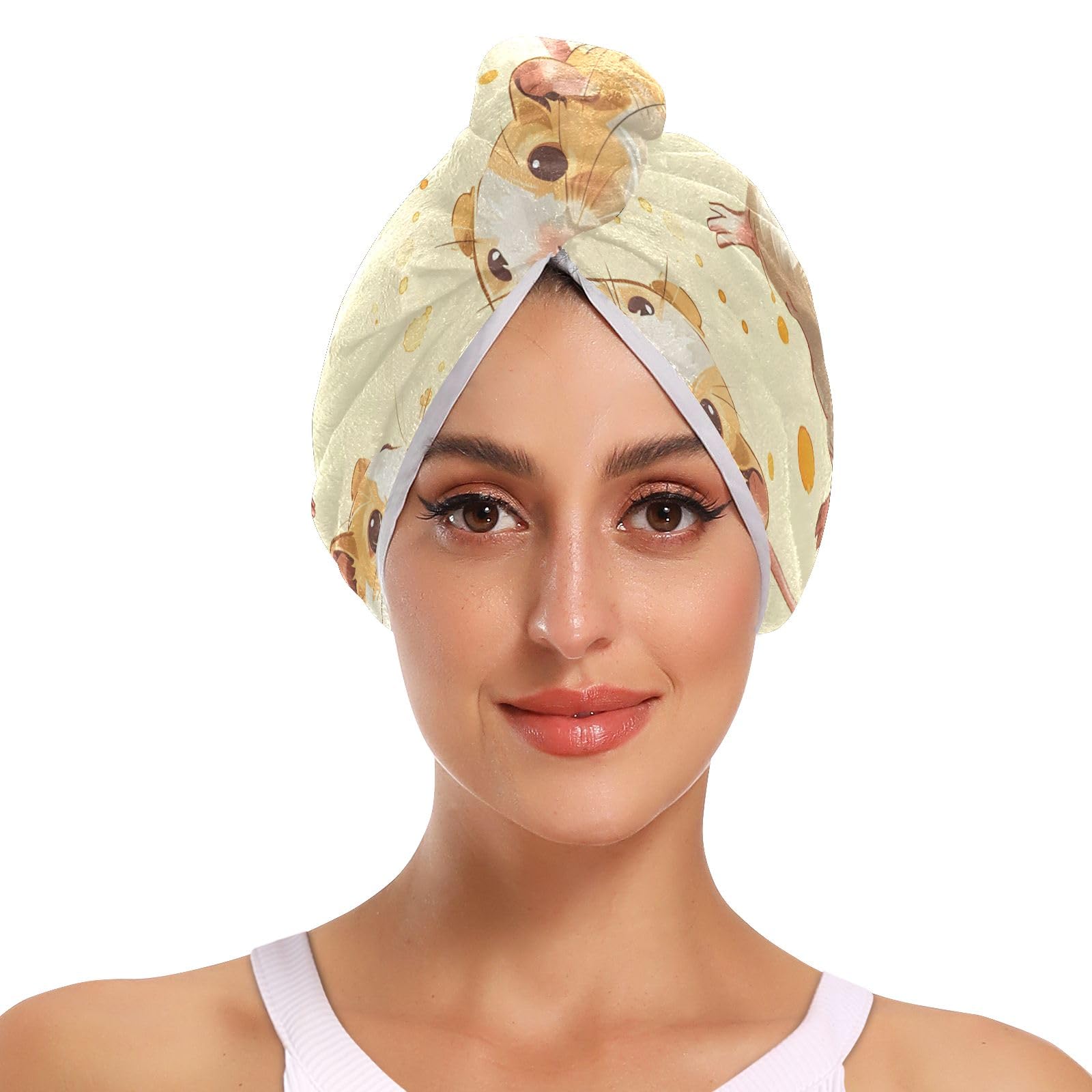 Little Hamster Yellow Hair Towel 2 Pack Super Absorbent Hair Drying Towel Quick Dry Hair Turbans Head Towel with Button Twisty Wrap for Women Girls