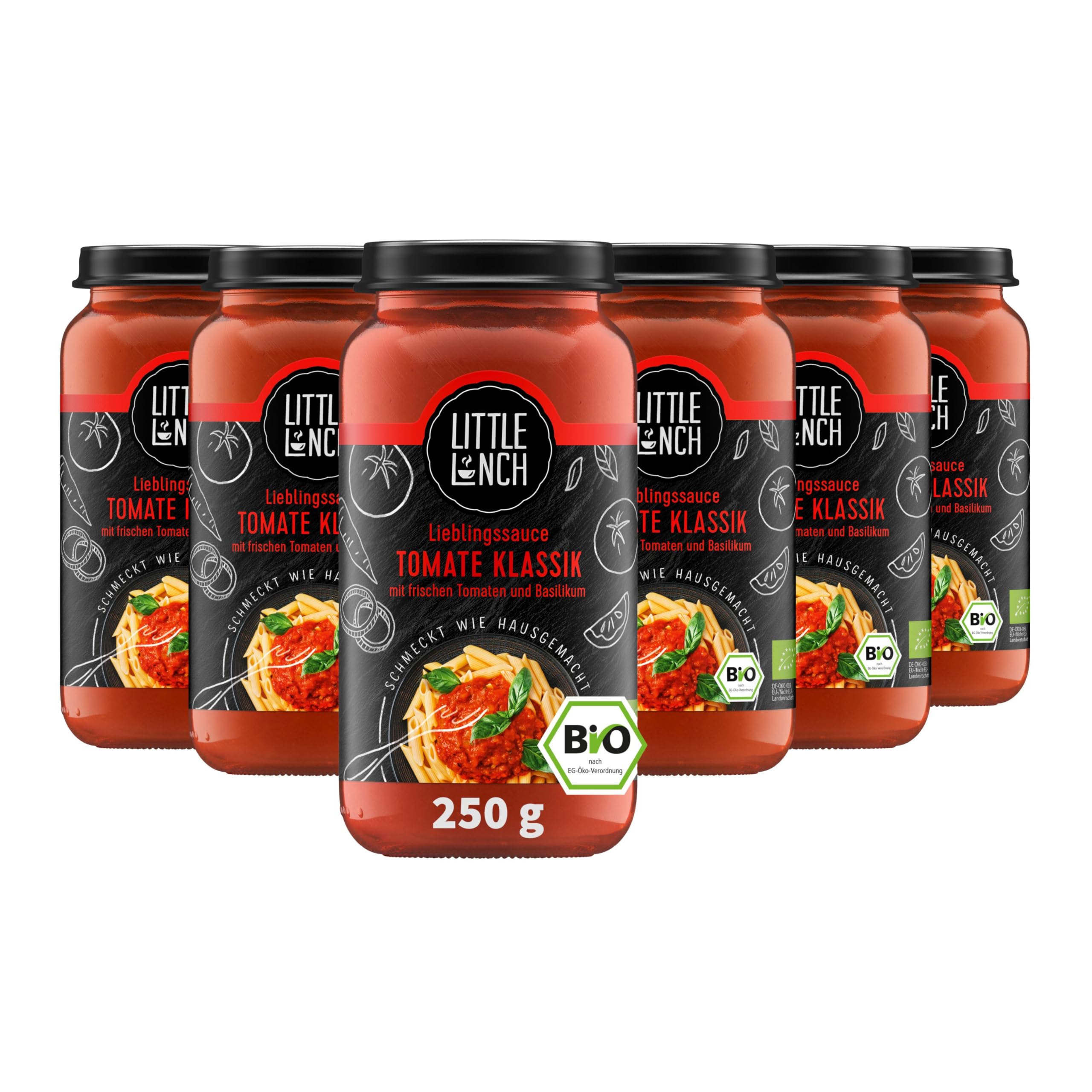 Enjoy pasta as in Bella Italia.Sonnen -ripened tomatoes together with fresh basil form our delicious and versatile sauces classic.Natural taste, like homemade - without artificial additives.Fits perfectly: pasta gnocchi and zoodles. Ingredients / ingredients 63% tomato puree*, 17% tomato paste*(double concentrated), 7% onions*, 4% carrots*, sunflower oil*, grape juice*(from grape juice concentrate), sea salt, starch*, herbs*(0.2% basil, parsley,Oregano, lovage), lemon juice*(from lemon juice concentrate), garlic*, pepper*.*Ingredients from controlled biological production Address manufacturer/importer Littlelunch GmbH, Am Alten Schlachthof 1, 86153 Augsburg More practical portion size: a glass lint lunch favorite sauce corresponds to a portion and ensures less food waste;The Sauce Tomate Classic is already ready for consumption and is ideally complemented with a side dish of your choice.Vegan and gluten -free: we have something for every taste and a large selection of vegan and gluten -free products;Our vegan tomato sauce is a real classic and makes your heart beat faster for Italy fans.Simple and quick: you don't have time or desire to cook.Then our organic tomato sauce is the solution;The sauce ideally fits pasta or pasta of all kinds and can be heated in a pot or the microwave in no time;Suitable for cooking.100 percent natural and without added sugar: In our favorite sauce tomato classic, we do without artificial additives, preservatives and also do without any added sugar.No glutat mate, no flavor enhancers.Fully bio- Really delicious: For our favorite sauce organic tomato classic we only use the best ingredients from 100 percent organic quality and completely do without artificial frills;With our tomato sauce, every meal tastes homemade. Genieße Pasta wie in Bella Italia. Sonnengereifte Tomaten bilden zusammen mit frischem Basilikum unseren leckeren und vielseitig einsetzbaren Saucen Klassiker. Natürlicher Geschmack, wie hausgemacht – ohne künstliche Zusätze. Passt perfekt zu: Pasta Gnocchi und Zoodles. INHALTSSTOFFE / ZUTATEN 63% Tomatenpüree*, 17% Tomatenmark* (zweifach konzentriert), 7% Zwiebeln*, 4% Karotten*, Sonnenblumenöl*, Traubensaft* (aus Traubensaftkonzentrat), Meersalz, Stärke*, Kräuter* (0,2% Basilikum, Petersilie, Oregano, Liebstöckel), Zitronensaft* (aus Zitronensaftkonzentrat), Knoblauch*, Pfeffer*. *Zutaten aus kontrolliert biologischer Erzeugung ANSCHRIFT HERSTELLER/IMPORTEUR littlelunch GmbH, Am alten Schlachthof 1, 86153 Augsburg MehrPRAKTISCHE PORTIONSGRÖßE: Ein Glas Little Lunch Lieblingssauce entspricht einer Portion und sorgt nachhaltig für weniger Lebensmittelverschwendung; Die Sauce Tomate Klassik ist bereits verzehrfertig und ergänzt sich ideal mit einer Beilage nach Wahl. VEGAN und GLUTENFREI: Wir haben für jeden Geschmack etwas dabei und eine große Auswahl an veganen und glutenfreien Produkten; Unsere vegane Tomatensauce ist ein echter Klassiker und lässt bei Italien-Fans das Herz höher schlagen. EINFACH und SCHNELL: Du hast keine Zeit oder Lust zu kochen. Dann ist unsere Bio Tomatensauce DIE Lösung; Die Sauce passt ideal zu Nudeln beziehungsweise Pasta jeder Art und kann im Handumdrehen im Topf oder der Mikrowelle erwärmt werden; Eignet sich super als Grundlage zum Kochen. 100 Prozent NATÜRLICH und OHNE ZUGESETZTEN ZUCKER: Wir verzichten bei unserer Lieblingssauce Tomate Klassik komplett auf künstliche Zusätze, Konservierungsstoffe und kommen auch ganz ohne zugesetzten Zucker aus. Kein Glutatmat, keine Geschmacksverstärker. VOLL BIO- ECHT LECKER: Für unsere Lieblingssauce Bio Tomate Klassik verwenden wir nur beste Zutaten aus 100 Prozent Bio-Qualität und verzichten komplett auf künstlichen Schnickschnack; Mit unsere Tomatensauce schmeckt jede Mahlzeit wie hausgemacht.Little Lunch Bio Tomatensauce Klassik | Sauce für Pasta | 100 Prozent Bio-Qualität | Vegan | Ohne zugesetzten Zucker | Laktosefrei | Keine künstlichen Zusätze | Ohne Geschmacksverstärker | 6 x 250g