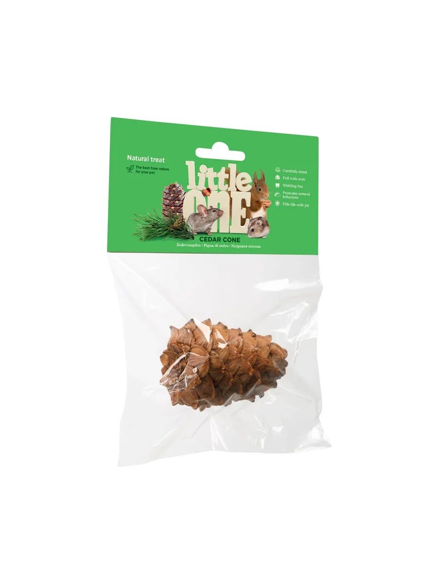 Лакомство-игрушка «Кедровая шишка» высушена специальным бережным методом, который позволяет существенно снизить содержание смол, это делает лакомсвтво безопасным для животных. Разгрызая лесные шишки, зверьки стачивают зубы и получают полезные питательные вещества, содержащиеся в орешках. Состав: кедровая шишка.