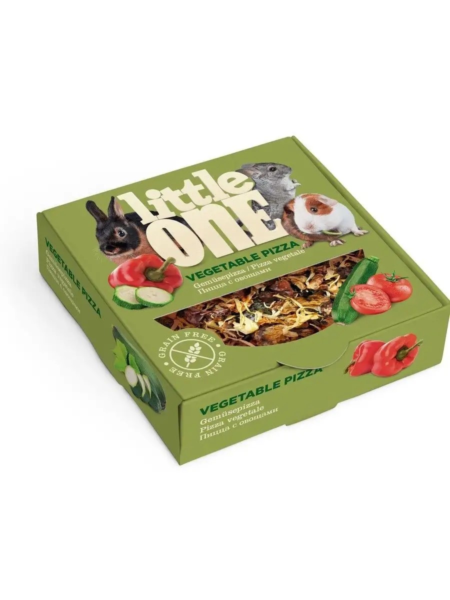 Пицца с овощами - беззерновое лакомство-игрушка для всех видов грызунов и кроликов. Ее основа изготовлена из ароматных луговых трав, а топпинг состоит из сушеных томатов, пастернака, цукини, сладкого перца и лепестков календулы. Такой состав делает пиццу настоящим удовольствием для домашних питомцев, а также источником необходимых витаминов и питательных веществ. Форма лакомства очень удобна для разгрызания, что способствует стачиванию постоянно растущих зубов.