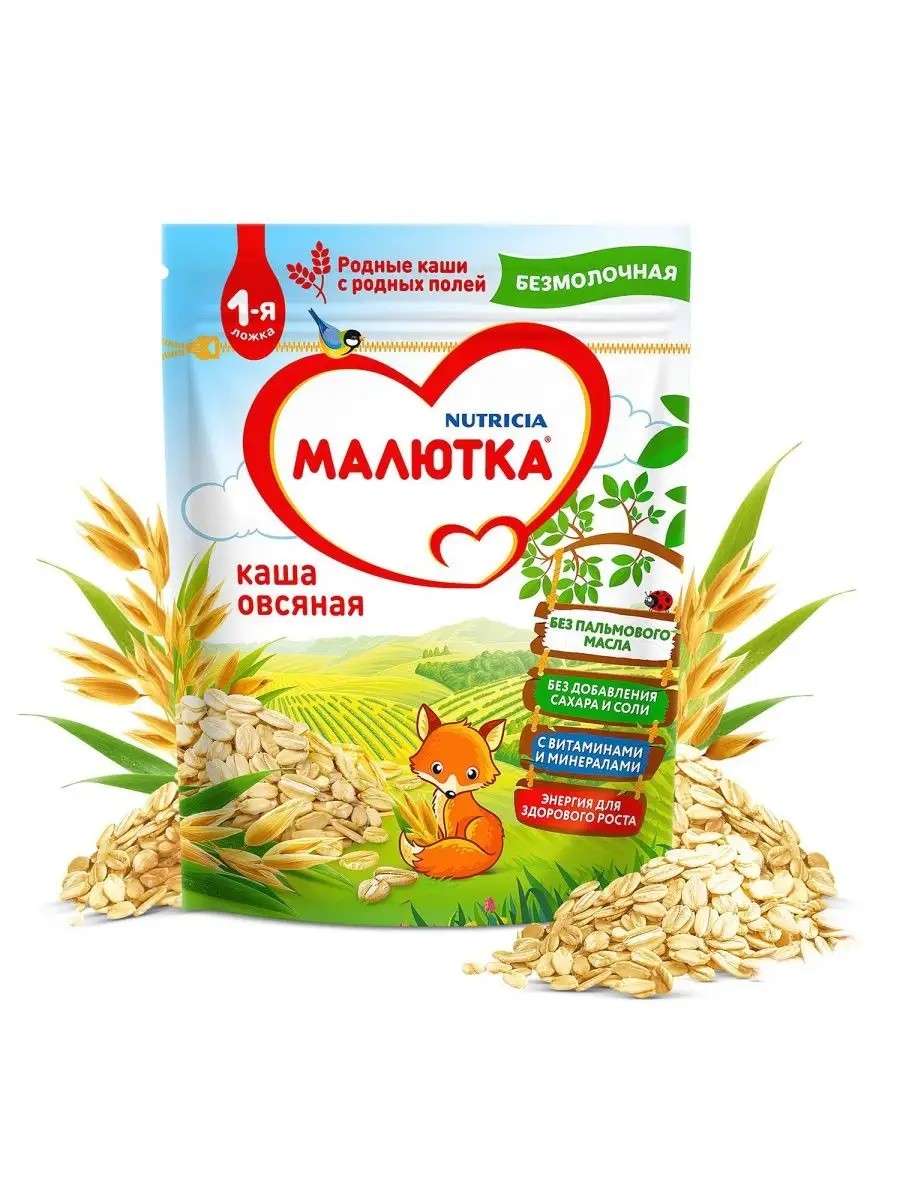 Dairy-free baby oatmeal for children from 5 months, 200g. Malutka porridges are native porridges from native fields! The recipes are based on select grains from the Russian fields of Altai, Stavropol, and Krasnodar, grown and selected according to high quality standards. When creating porridges, Nutricia specialists were inspired by the nature of Russia's regions. Each serving contains proteins, vitamins and minerals necessary for development, as well as carbohydrates that give the baby energy for growth. No palm oil. No added sugar or salt. Unless otherwise recommended by a specialist, it is recommended to introduce the child to a new product gradually, starting with one spoon, over 5-7 days increasing to the approximate age norm: from 5 months - up to 150 ml, from 8 months - 180 ml, from 9 months - 200 ml.