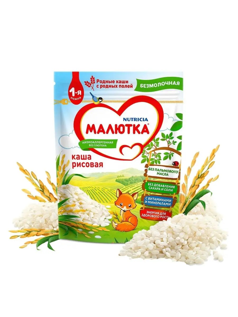 Dairy-free, low-allergy rice porridge for babies 4 months and older, 200g. Malutka porridges are the real deal! The recipes are based on select grains from the Russian fields of Altai, Stavropol, and Krasnodar, grown and selected according to high quality standards. Nutricia specialists were inspired by the nature of Russia's regions when creating these porridges. Each serving contains proteins, vitamins, and minerals essential for development, as well as carbohydrates that give your baby the energy to grow. Palm oil-free. No added sugar or salt. Low-allergenic. Gluten-free. Unless otherwise recommended by a specialist, we recommend introducing your child to a new product gradually, starting with one spoonful, and increasing to the approximate age-appropriate amount over 5-7 days: from 4 months—up to 150ml, from 8 months—180ml, from 9 months—200ml.