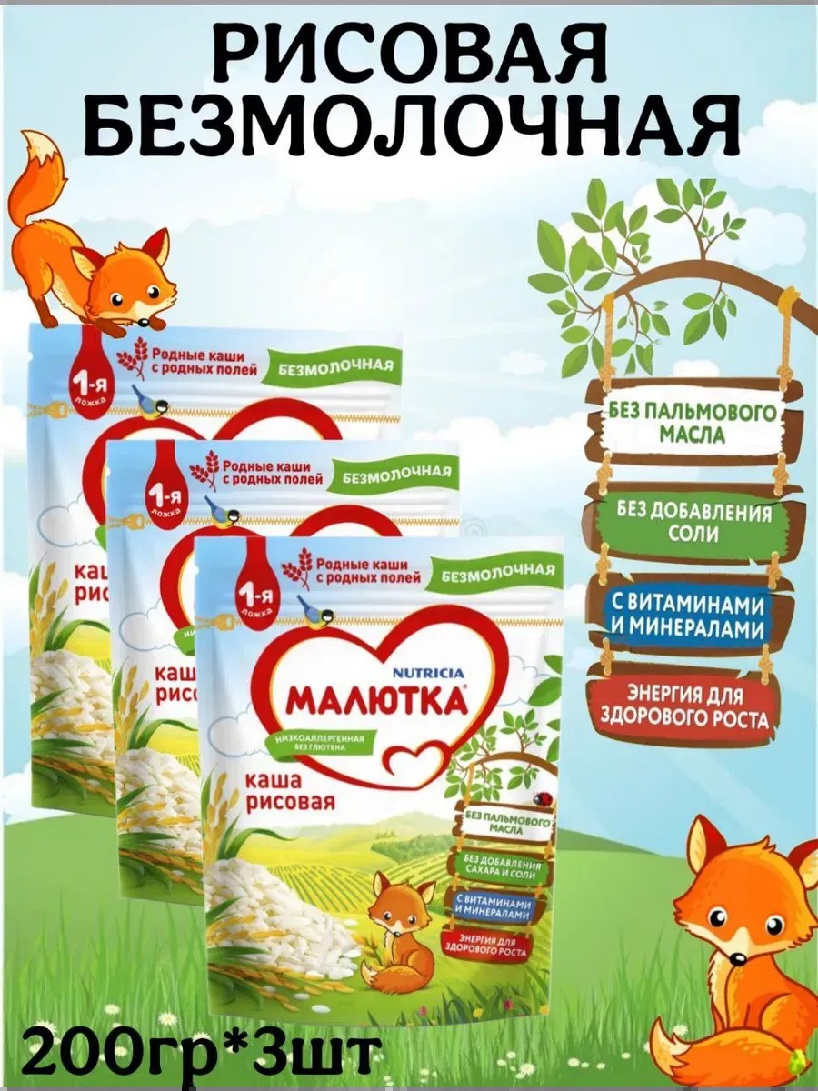 Малютка Каша безмолочная рисовая, 200г, 3шт