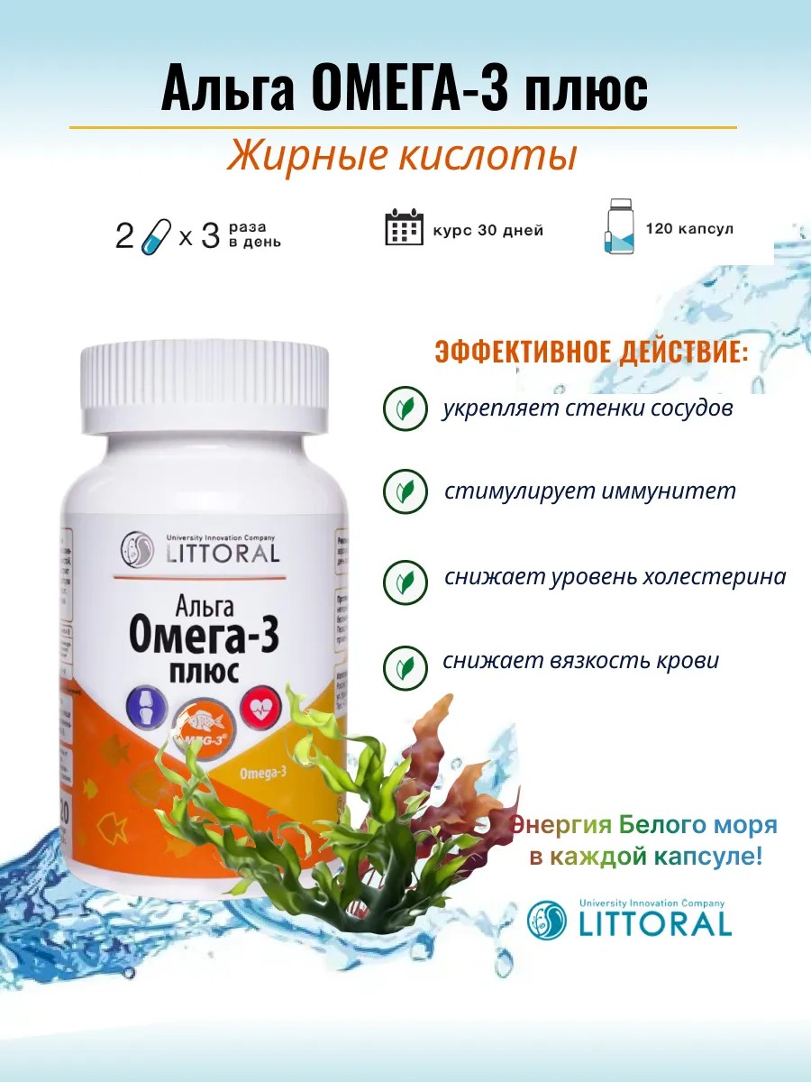 Комплекс полиненасыщенных жирных кислот (ПНЖК), не синтезируемых организмом и жизненно необходимых ему. ПНЖК семейства Омега – 3 являются эффективным средством профилактики атеросклероза, так как снижают уровень холестерина и триглицеридов в крови, оказывают нормализующее действие на стенки кровеносных сосудов, повышают их эластичность и снижают проницаемость, уменьшают риск тромбообразования. При дефиците полиненасыщенных жирных кислот снижается устойчивость к неблагоприятным внешним и внутренним факторам, угнетается репродуктивная функция, подавляется иммунная защита организма, ухудшается состояние кожных покровов, возникает опасность развития язвенных поражений слизистых оболочек.