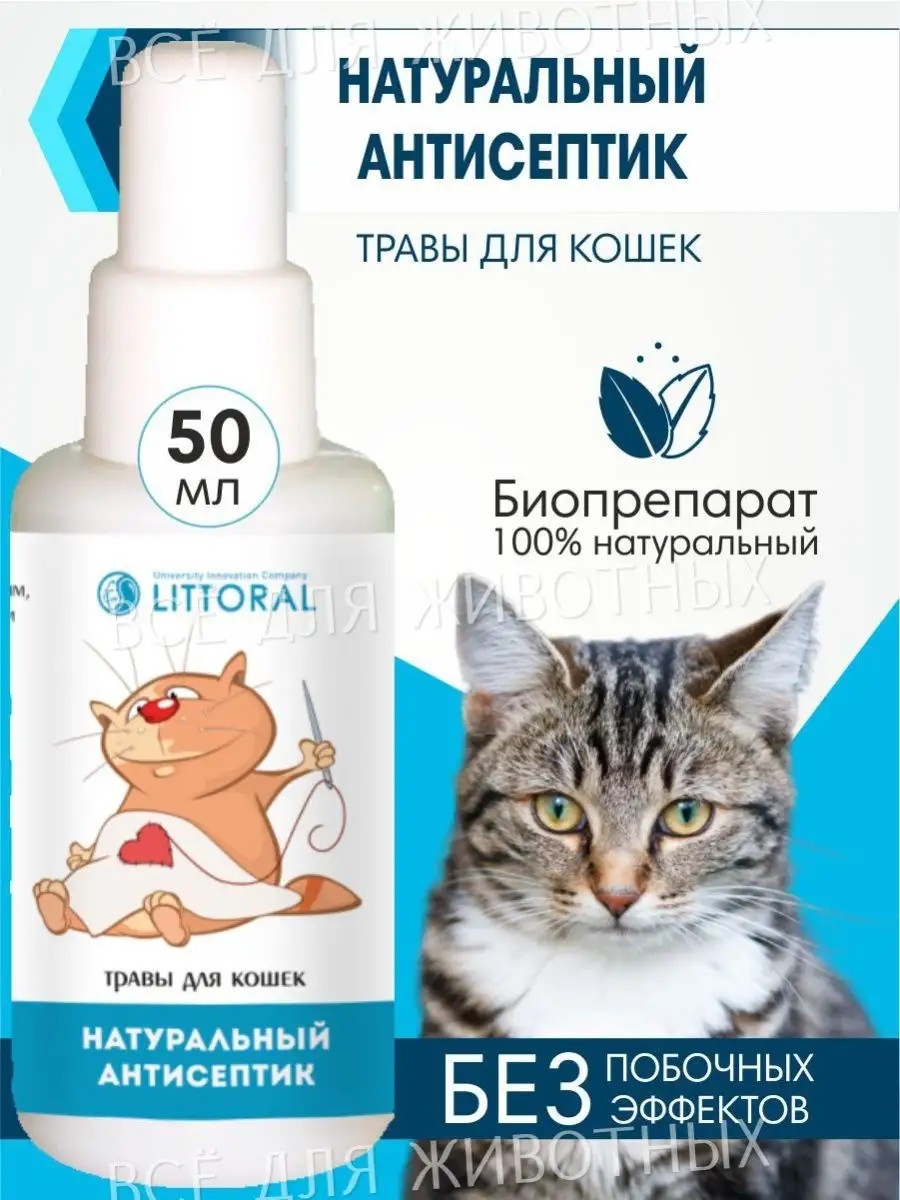 КомплектацияАнтисептик для кошек настойка трав 50 мл - 1 упаковка
