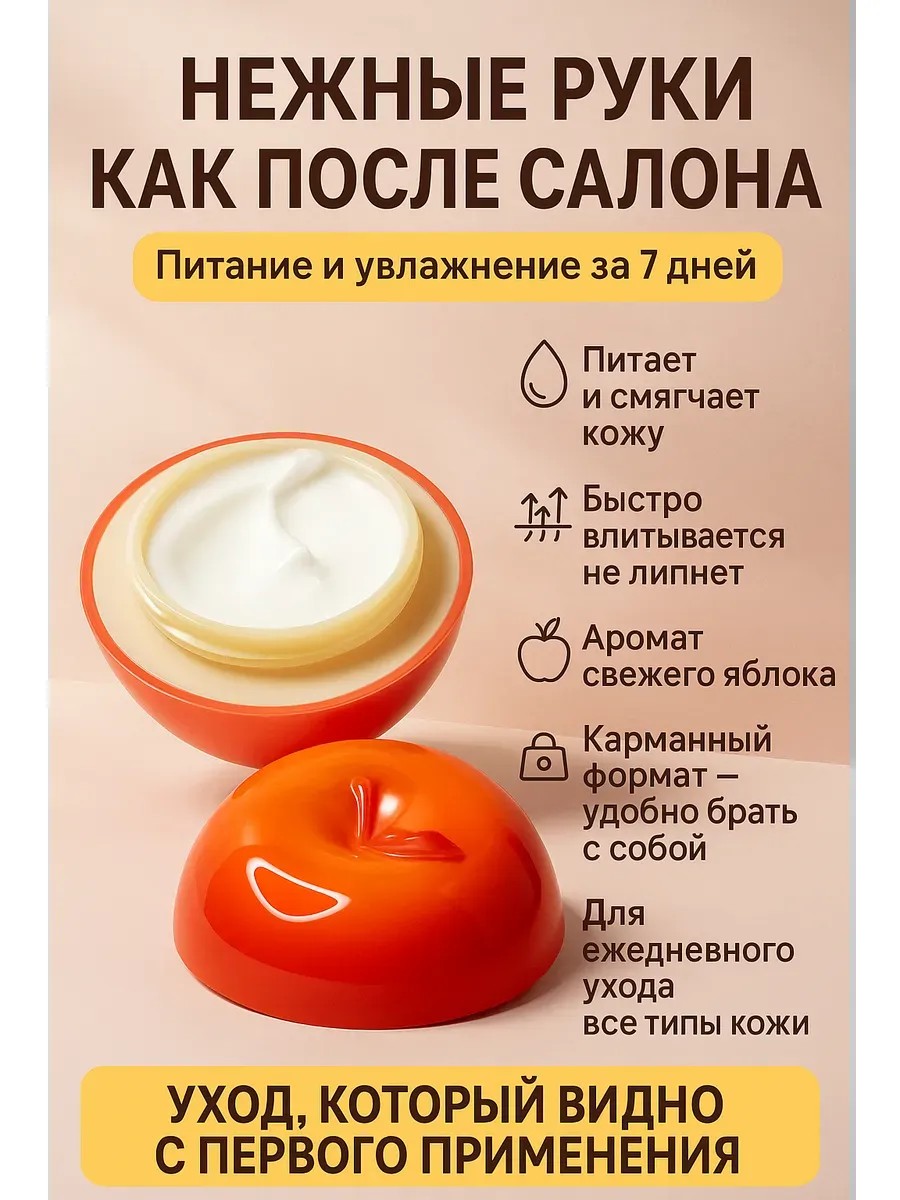 Подарите себе мягкость и свежесть с первого использования! Фруктовый крем для рук в оригинальной форме яблока — это не просто уход, это удовольствие для ваших рук и эстетика на вашей полке.