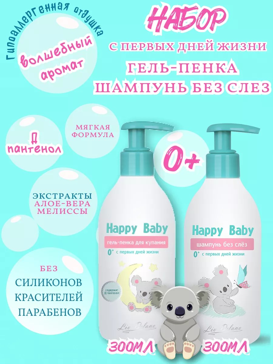 liv delano Гель-пенка и шампунь без слез для новорожденных Happy Baby