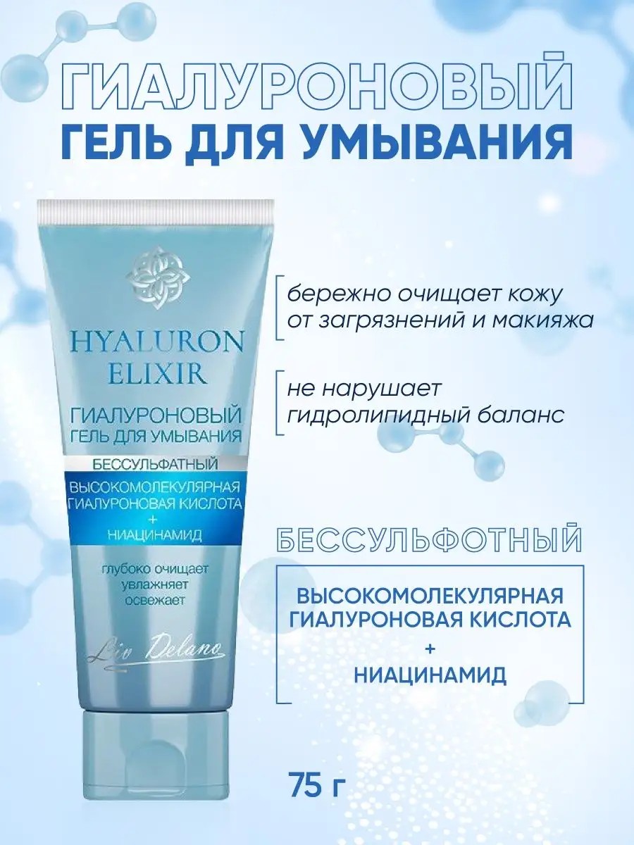 Гиалуроновый гель для умывания от белорусского бренда Liv Delano - это инновационное средство для ухода за кожей, которое бережно очищает кожу от загрязнений и макияжа, не нарушая при этом её гидролипидный баланс. Благодаря уникальной формуле, умывалка для лица улучшает барьерную функцию кожи, увеличивает ее увлажненность, сокращает морщины, уменьшает поры и делает кожу более ровной. Активный комплекс увлажняющих компонентов в составе уходовой косметики для лица (ниацинамид, бетаин, гиалуроновая кислота) защищает кожу от действия жёсткости воды, успокаивает её и освежает, возвращая естественное сияние. Гиалуроновая кислота благодаря низкой молекулярной массе имеет высокую проникающую способность, а потому проявляет лучший увлажняющий эффект, заметный сразу же после применения. Стимулирует синтез протеинов плотных соединений, в результате улучшается сцепление клеток, а это предупреждает транс-эпидермальную потерю влаги. Активно стимулирует синтез проколлагена I, в результате повышается тонус и упругость кожи. Кроме того, гель для умывания лица регулирует выработку себума, что позволяет избежать появления жирного блеска на коже и уменьшить риск появления прыщей. Одним из основных преимуществ данного средства является его мощное противовоспалительное действие, которое помогает предотвратить раздражение и воспаление кожи. Благодаря отсутствию в составе SLS, SLES, парабенов гель для умывания от прыщей подходит для всех типов кожи, включая чувствительную. Благодаря своей легкой текстуре, умывашка для лица нежно очищает поры, удаляя излишки кожного жира и загрязнения, без пересушивания и раздражения. Попробуйте гиалуроновый гель уход за лицом от белорусской косметики и убедитесь в его эффективности и натуральности. Воспользуйтесь уникальными свойствами этого средства для поддержания здоровья и красоты вашей кожи каждый день.