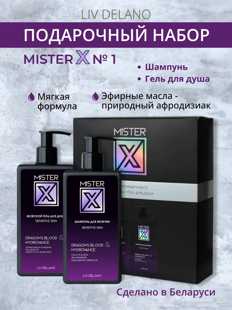 Подарочный набор мужской Mister X от белорусского производителя косметики Liv Delano. Mister X — образ мужчины, чья жизнь наполнена энергией, страстью и спонтанностью.