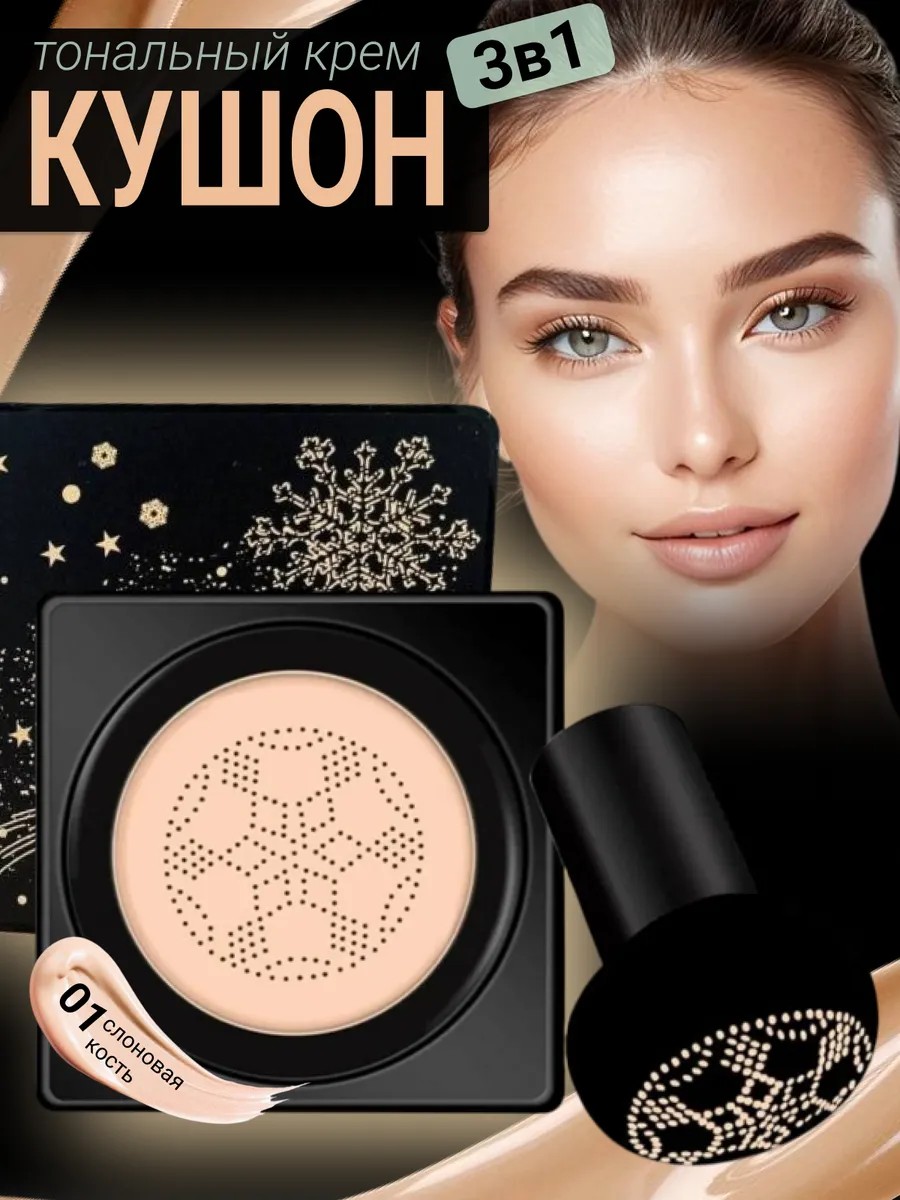 Snail mucin cushion foundation, shade 01, with a lifting effect. Ideal for both problematic and dry skin. It provides an even tone thanks to its moisturizing formula. It effectively combats pigmentation and flaking, and smoothes skin texture. This cushion BB cream foundation with a convenient sponge is suitable not only for daily use but also as a corrector or a large-volume hydrating concealer. This matte foundation for oily skin perfectly covers pimples and redness.