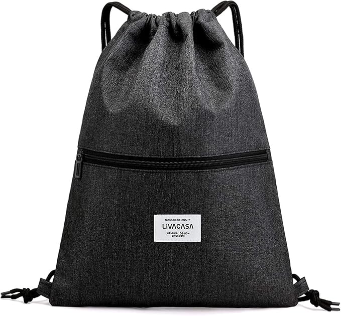LIVACASA Gym Bag with Zip Inner Pocket Sports Bag Waterproof Hipster Bag Side Pocket Gym Bag Lined Backpack with Adjustable Drawstring Gym Bag for Men and Women - Black