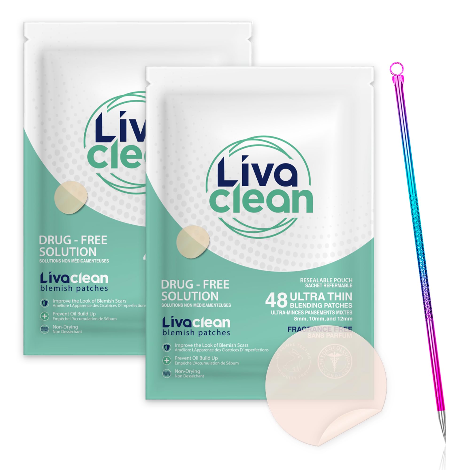 LivaClean (96 Count 2 Pack) Hydrocolloid Patches & Rainbow Blackhead Tool Hydrocolloid Patches for Face Hydrocolloid Gunk Catcher Hydrocolloid Covers 2 Pack + BH Tool (Rainbow)