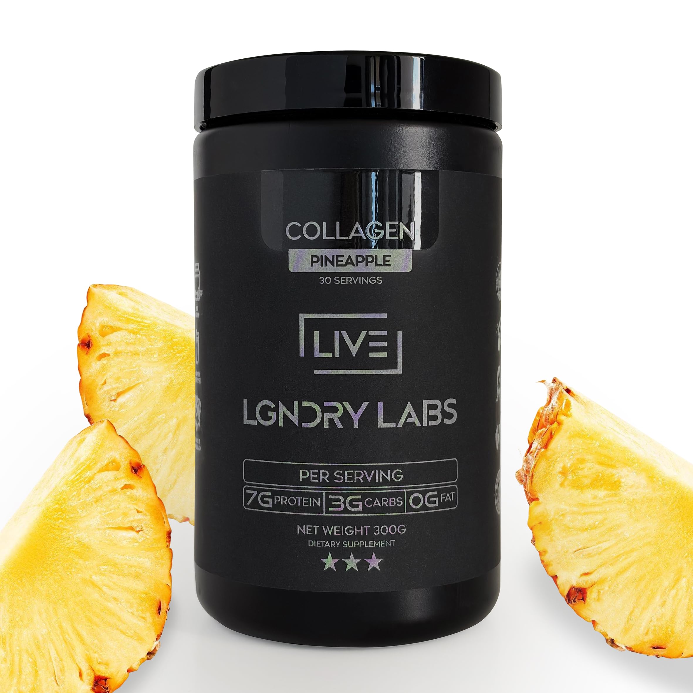 Support your daily wellness and performance with LIVE LGNDRY Labs Collagen Powder – Pineapple Flavor. This premium collagen supplement is designed to help promote healthy skin, hair, and nails while supporting joint comfort and recovery for an active lifestyle. Each serving delivers 7g of collagen protein with 0g fat and low carbs, making it an easy addition to your daily routine. The refreshing pineapple flavor mixes smoothly into water, smoothies, or your favorite beverages—no clumping, no chalky aftertaste. Whether you're training hard, staying active, or simply focused on looking and feeling your best, LIVE LGNDRY Collagen helps support strength from the inside out. Perfect for men and women looking for a convenient, great-tasting collagen supplement to support overall health and performance.LIVE LGNDRY LABS QUALITY Crafted for athletes and active individuals who demand premium ingredients, great taste, and consistent performance support. EASY DAILY COLLAGEN SUPPLEMENT Designed for daily use to support recovery, mobility, and overall wellness. Perfect pre-workout, post-workout, or anytime of day. REFRESHING PINEAPPLE FLAVOR Light, clean pineapple taste that mixes smoothly into water, smoothies, or shakes—no gritty texture or chalky aftertaste. 7G COLLAGEN PROTEIN PER SERVING Each serving delivers 7 grams of collagen protein with 0g fat and low carbs, making it ideal for fitness-focused and wellness-driven lifestyles. SUPPORTS SKIN, HAIR, NAILS JOINTS Formulated with high-quality collagen protein to help support healthy skin elasticity, stronger hair and nails, and joint comfort for everyday movement and training.
