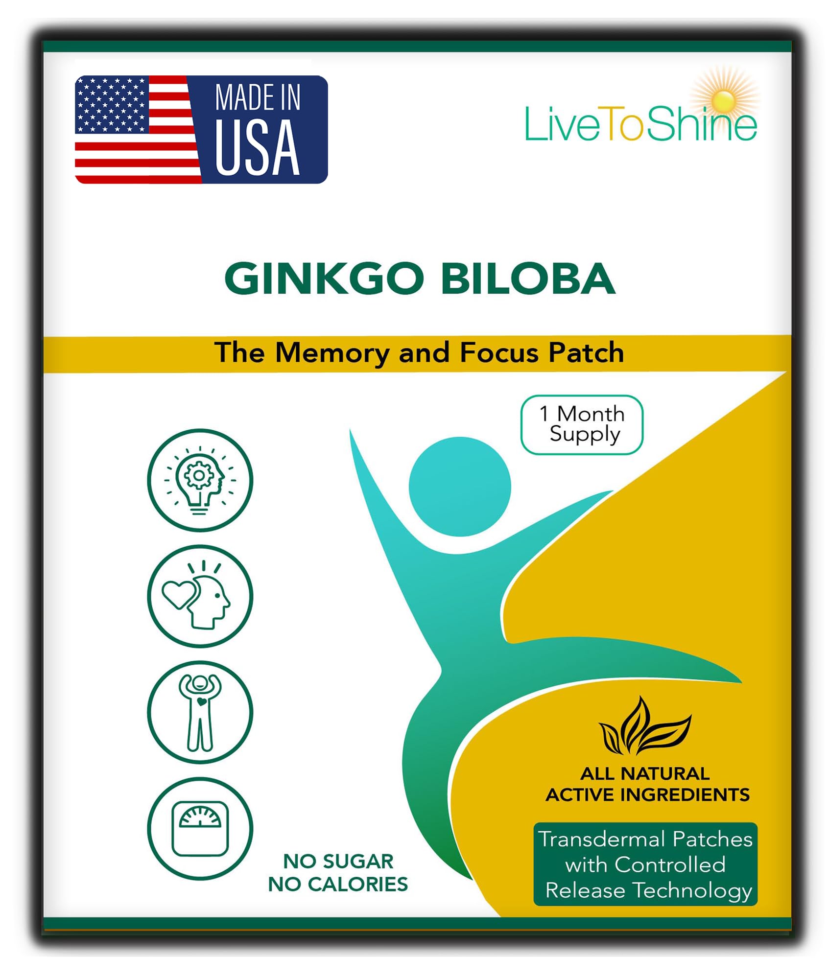 Live To Shine Ginkgo Biloba Patch - 30 Gingko Transdermal Patches - One Month Supply for Women and Men - USA Made
