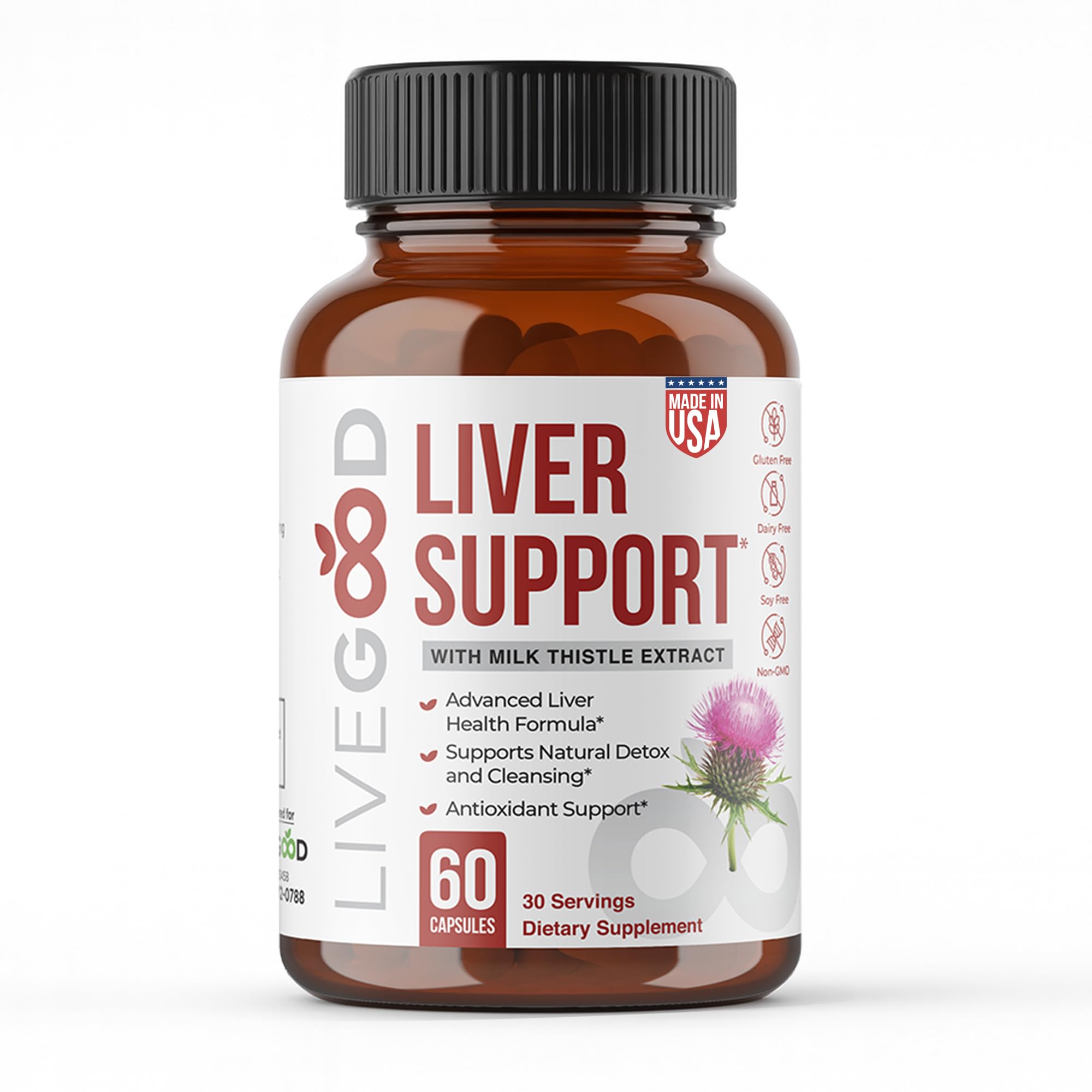 Crafted in the USA under strict quality standards, this product delivers reliable consistency you can count on. From ingredient sourcing to final packaging, every step is carefully managed to ensure premium quality. Designed to offer exceptional value, it provides high-quality ingredients at a price that fits your wellness routine. Made by LiveGood, Built for Better Living, Exceptional value with premium-grade ingredients you can trust: At LiveGood, we're redefining what it means to live well—by delivering the premium supplements with full value transparency every step of the way. From sourcing to shipping, we're committed to honesty, integrity, and helping you live your healthiest life without compromise. Liver Protection for Big Nights Long Weekends Your liver takes the hit when you enjoy heavy meals, late nights, and celebratory weekends. This potent formula with milk thistle, dandelion root, and turmeric supports natural detox, healthy digestion, and daily liver protection to help you recover and reset. Comprehensive Liver Support Formula LiveGood Liver Support is designed for daily use to promote liver health and detoxification. Each bottle contains 60 capsules for a full 1-month supply. Take 2 capsules daily to help support liver detox cleanse and improve digestion, metabolism, and overall wellness with clinically studied ingredients. Powerful Ingredients for Liver Health Formulated with milk thistle extract, dandelion root, turmeric, and alpha lipoic acid, this premium liver support supplement combines nature's most trusted ingredients for liver cleanse detox. Also includes NAC, TUDCA, and essential minerals to help protect and maintain optimal liver function.