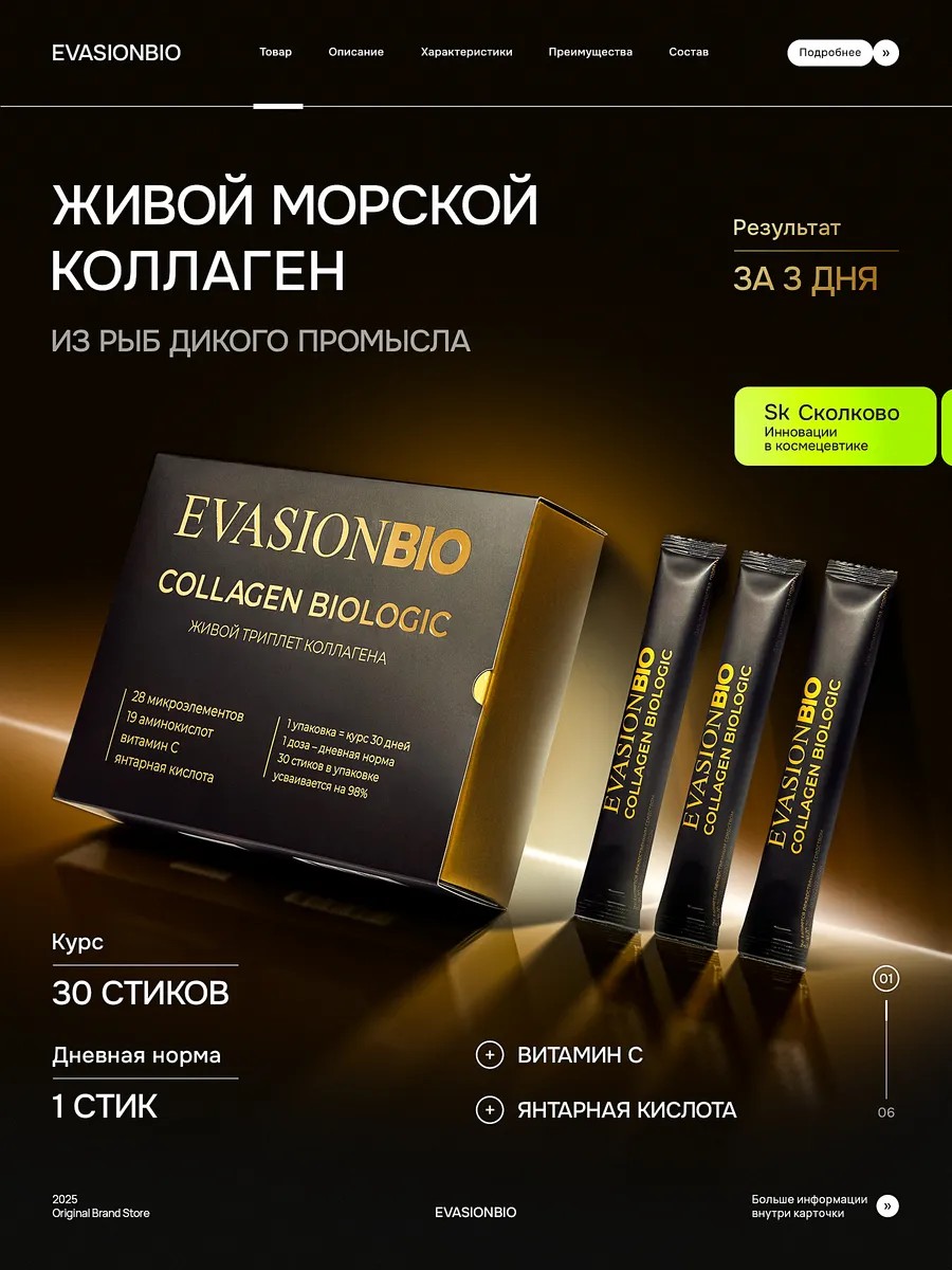 Collagen Biologic fish collagen is produced using a patented technology, preserving all its beneficial properties.