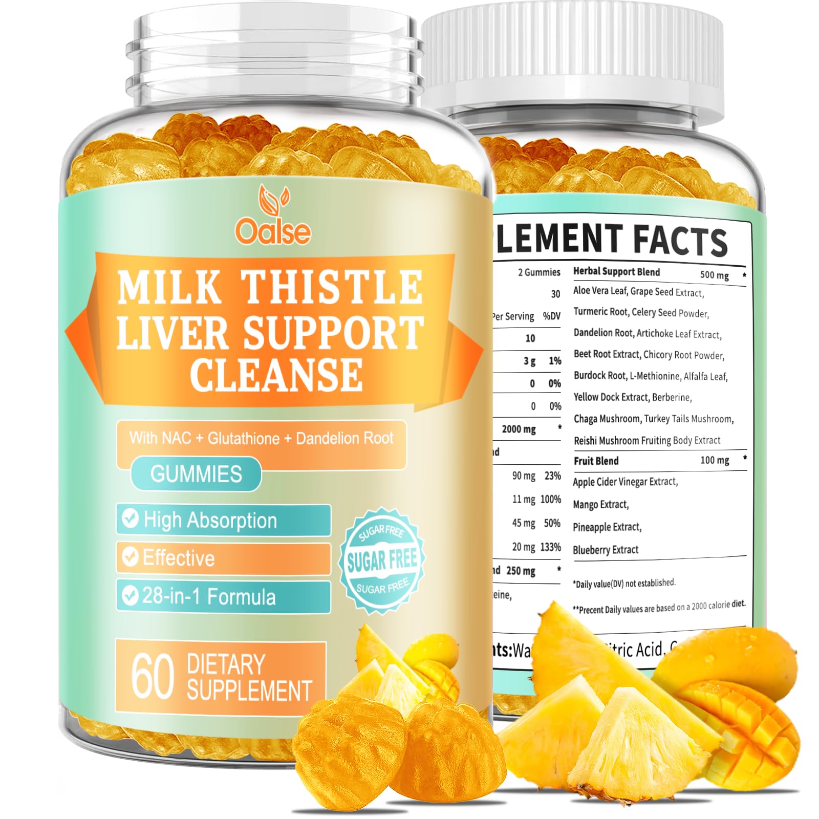Liver Cleanse Detox & Repair 2000 Mg Milk Thistle Gummies - Mango Pineapple - with NAC Glutathione Dandelion Root Aloe Vera Leaf etc Gluten-Free 60 Count 60 Count (Pack of 1)
