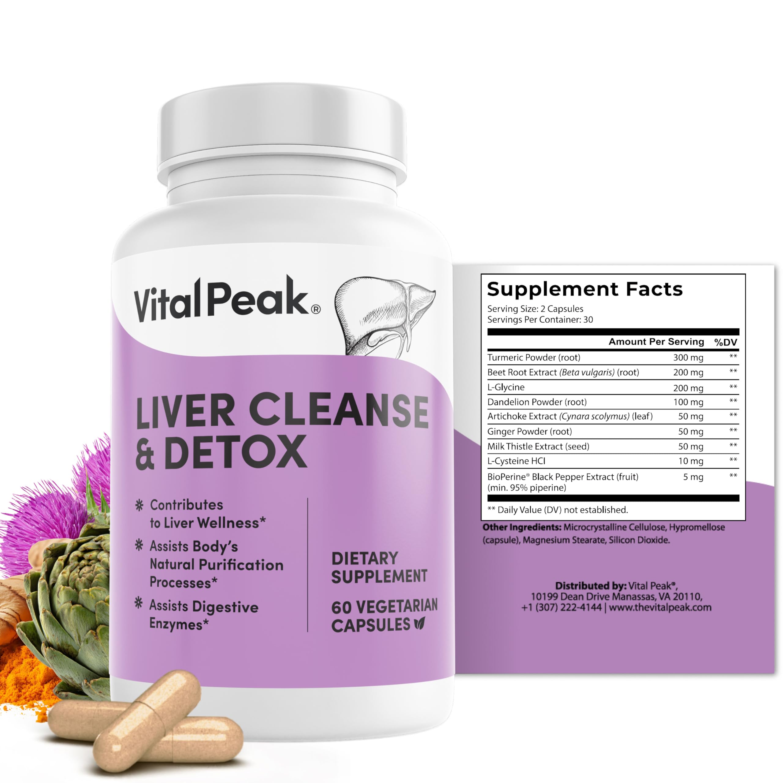 TRUSTED QUALITY Made in the USA in an SQF-certified facility in compliance with cGMP GMP requirements, using US and foreign ingredients. This supplement is vegan, non-GMO, and gluten-free. ANTIOXIDANT-RICH BOTANICAL BLEND Milk Thistle, Turmeric, Ginger, and Grape Seed Extract deliver powerful antioxidant support to help protect cells and maintain healthy liver function. . METABOLIC ENERGY SUPPORT Beet Root, Glycine, and L-Cysteine work together to support natural metabolic processes, energy production, and overall vitality - ideal for daily liver wellness. . DIGESTIVE COMFORT BLOATING SUPPORT Ginger, Dandelion, and Artichoke help maintain digestive balance, support nutrient breakdown, and ease occasional bloating as part of a healthy digestion routine. . SUPPORTS LIVER CLEANSE DAILY DETOX Formulated with Milk Thistle (80 silymarin), Turmeric, Dandelion, Artichoke, and Beet Root to support natural liver function, gentle detox pathways, and overall wellness. .