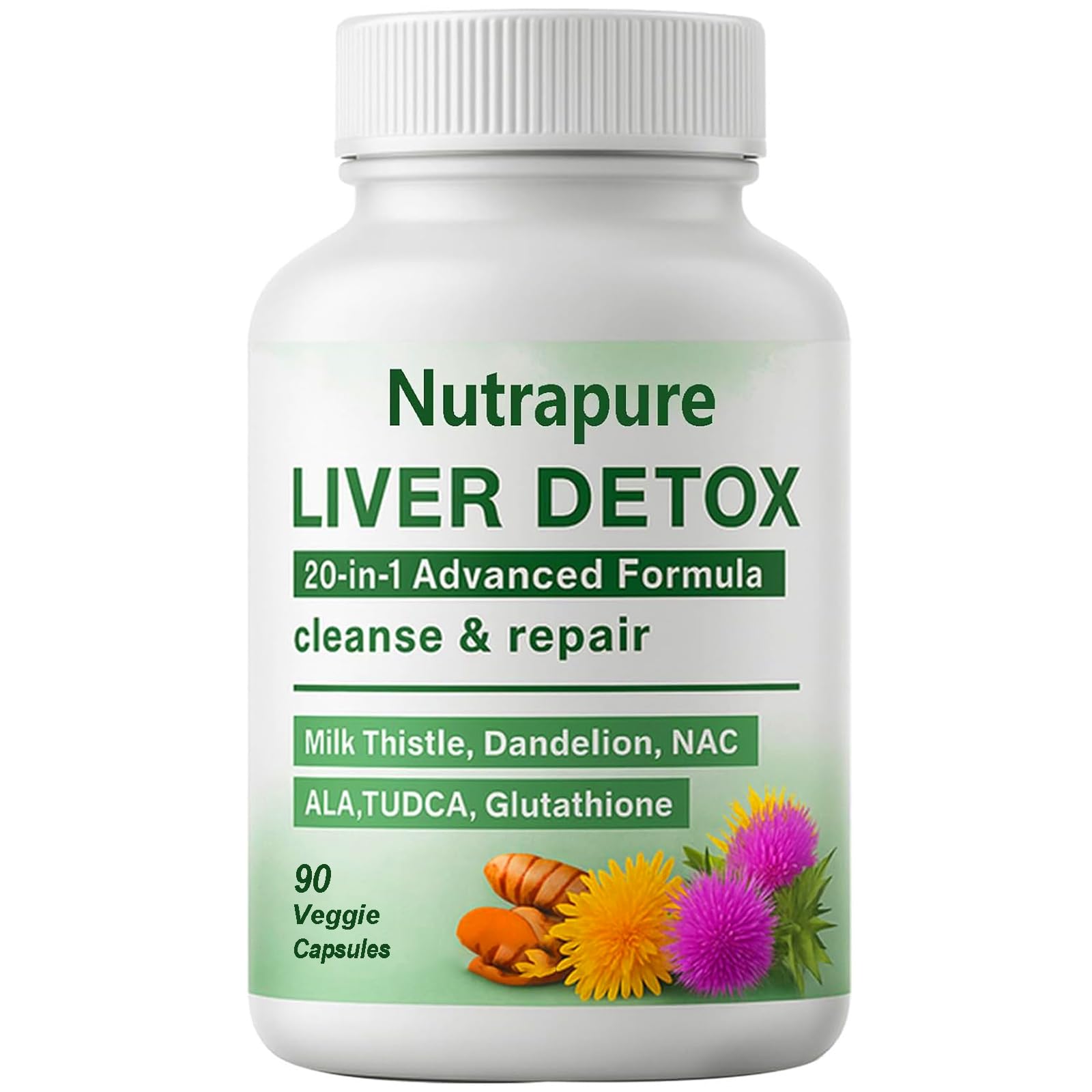 Liver Detox Capsules - 20-in-1 Herbal Formula with Milk Thistle Dandelion Turmeric & Artichoke Leaf for Liver Support and Digestive Balance Non-GMO Gluten-Free (1)
