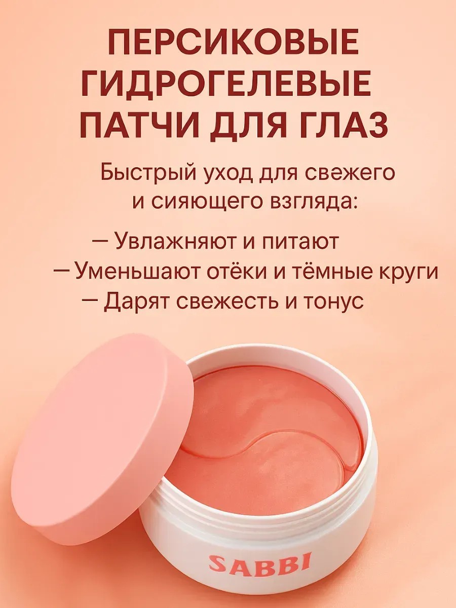 Патчи SABBi — это не просто уход, а ежедневный ритуал красоты с ароматом спелого персика. Оцените комфорт, эффективность и эстетичное оформление. Сделано с заботой о вашей коже.soso