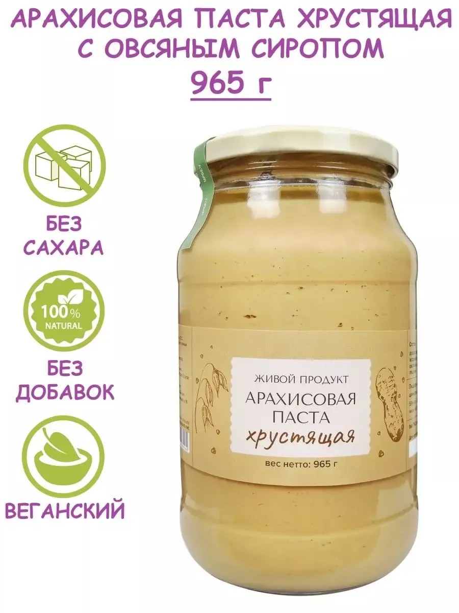 Живой продукт Арахисовая паста хрустящая с овсяным сиропом, 965 г (1 кг)
