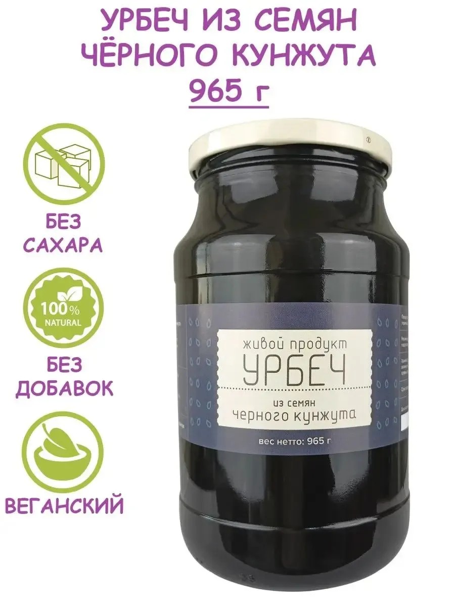 Живой продукт Урбеч из семян черного кунжута, без сахара, 965 г (1 кг)