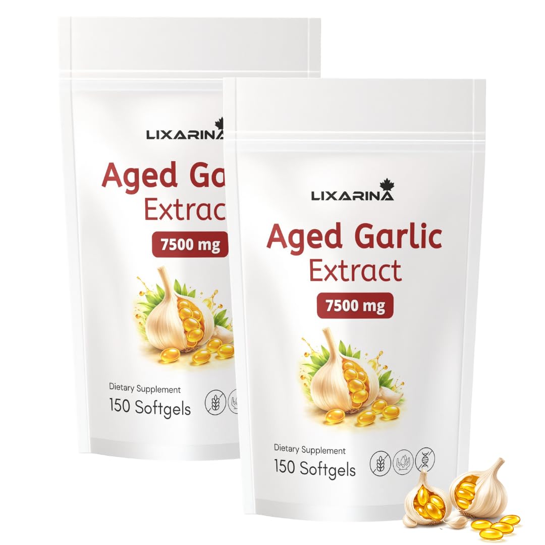 LIXARINA Aged Garlic Extract - 7500mg Odorless | Organic Garlic Extract Capsules | Softgels Supplement | AgedGarlic Supplement for Men & Women | 300 Softgels