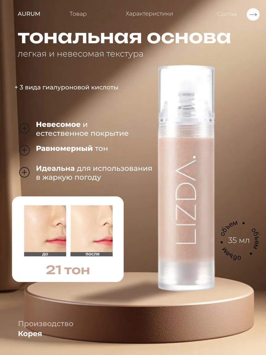 | Комплектация | Тональная основа LIZDA 21 тон; подарок |